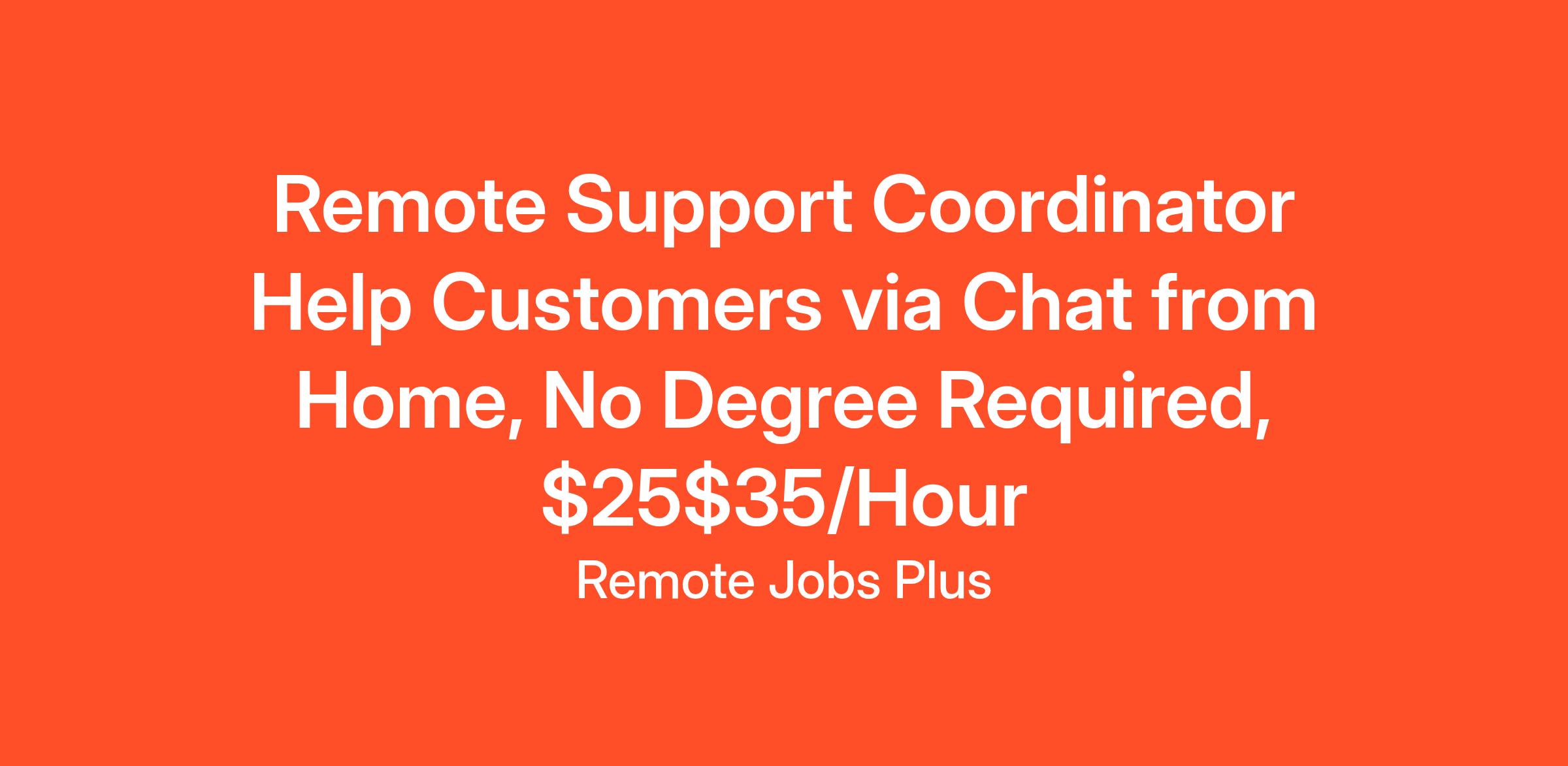 Remote Support Coordinator Help Customers via Chat from Home, No Degree Required, $25$35/Hour