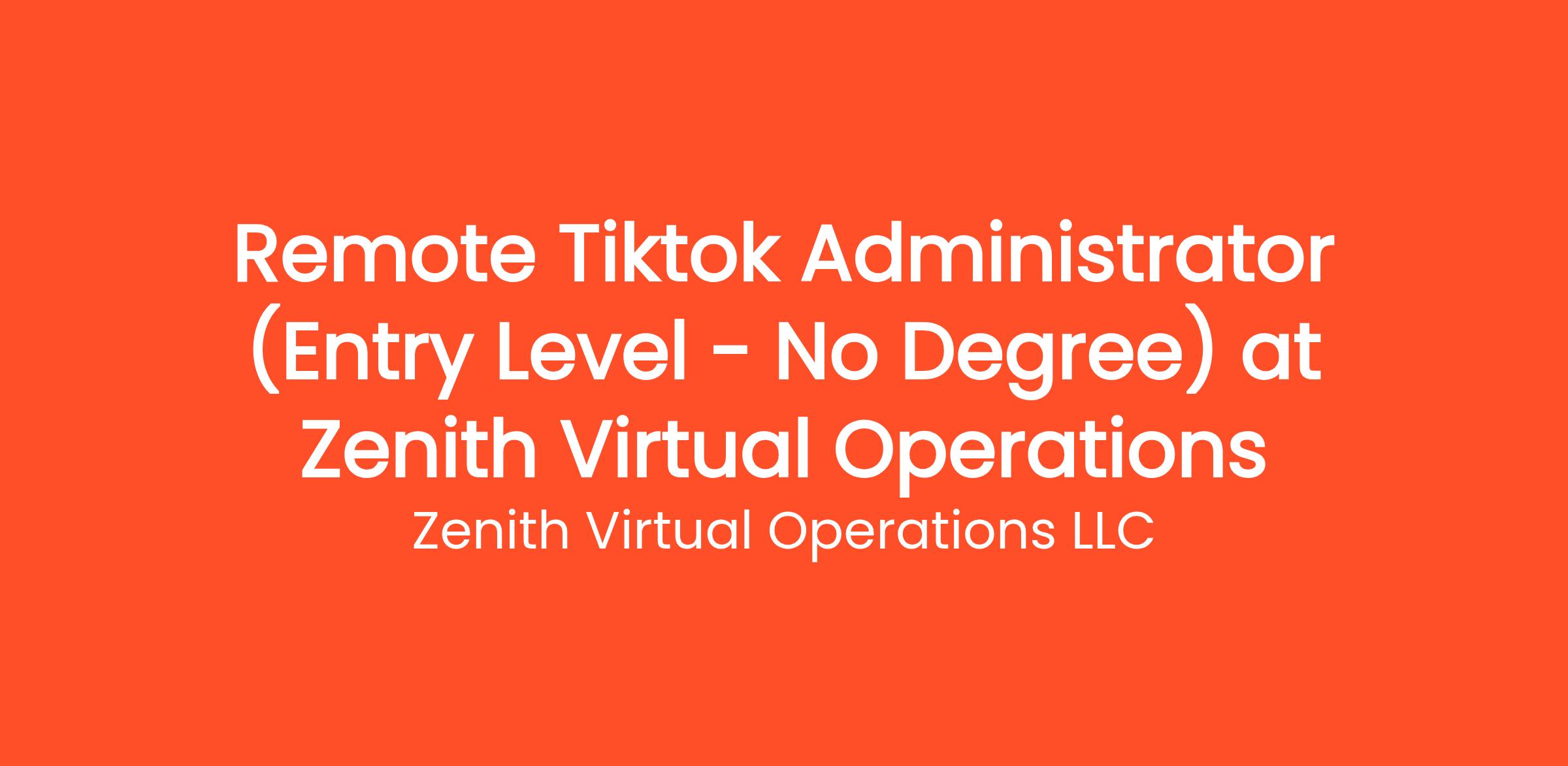 Are you highly organized and looking for the perfect entry-level opportunity? Zenith Virtual Operations LLC is currently seeking a Remote Tiktok Administrator (Entry Level - No Degree) to join our rapidly growing remote team. If you've been searching for remote jobs no degree or remote jobs no experience, this is the exact role you've been looking for. No degree required and no prior experience is necessary—we provide comprehensive training to all new hires! You will be responsible for critical daily operations, managing secure platforms, and contributing to our vibrant digital culture.