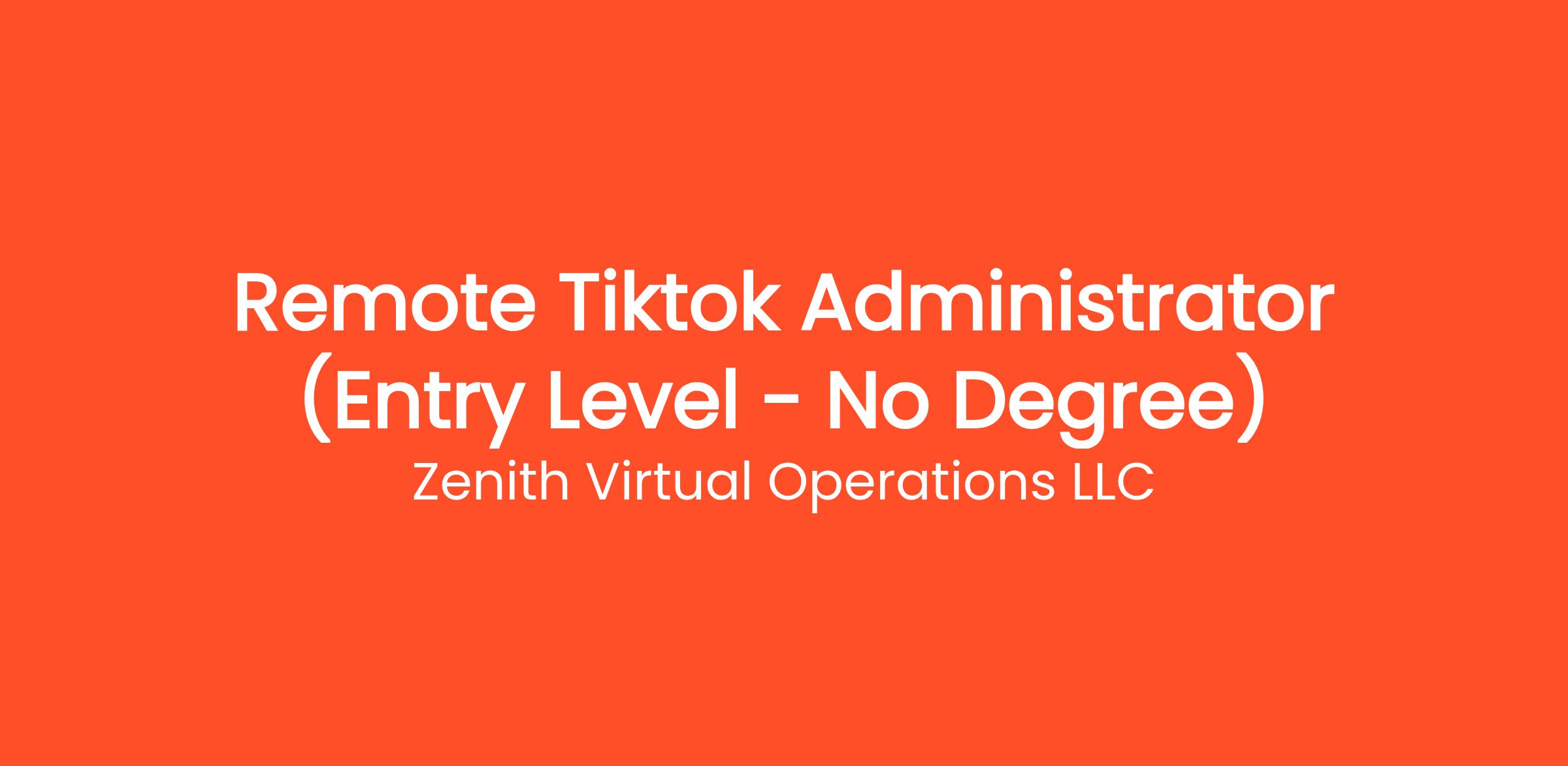 Are you highly organized and looking for the perfect entry-level opportunity? Zenith Virtual Operations LLC is currently seeking a Remote Tiktok Administrator (Entry Level - No Degree) to join our rapidly growing remote team. If you've been searching for remote jobs no degree or remote jobs no experience, this is the exact role you've been looking for. No degree required and no prior experience is necessary—we provide comprehensive training to all new hires! You will be responsible for critical daily operations, managing secure platforms, and contributing to our vibrant digital culture.
