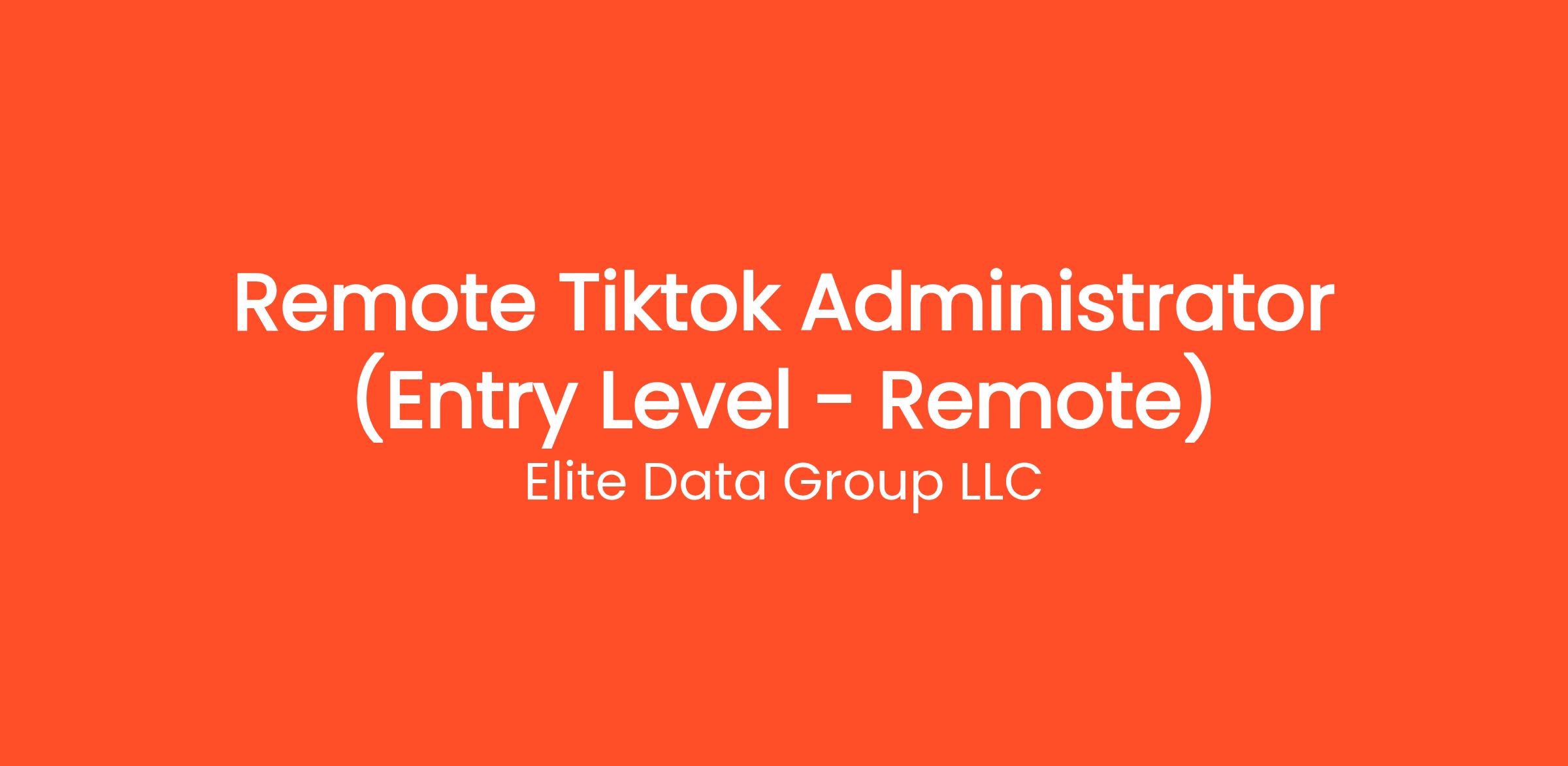 Are you highly organized and looking for the perfect entry-level opportunity? Elite Data Group LLC is currently seeking a Remote Tiktok Administrator (Entry Level - Remote) to join our rapidly growing remote team. If you've been searching for remote jobs no degree or remote jobs hiring, this is the exact role you've been looking for. No degree required and no prior experience is necessary—we provide comprehensive training to all new hires! You will be responsible for critical daily operations, managing secure platforms, and contributing to our vibrant digital culture.