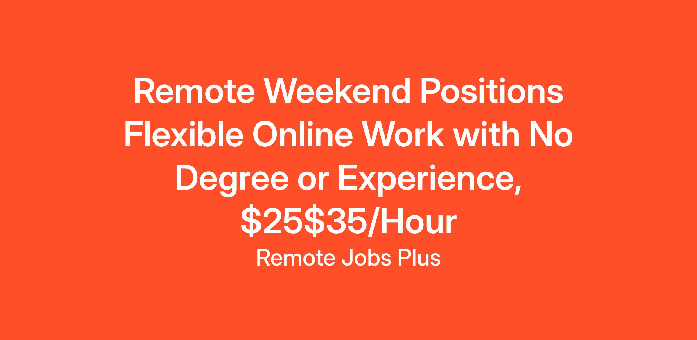 Remote Weekend Positions Flexible Online Work with No Degree or Experience, $25$35/Hour