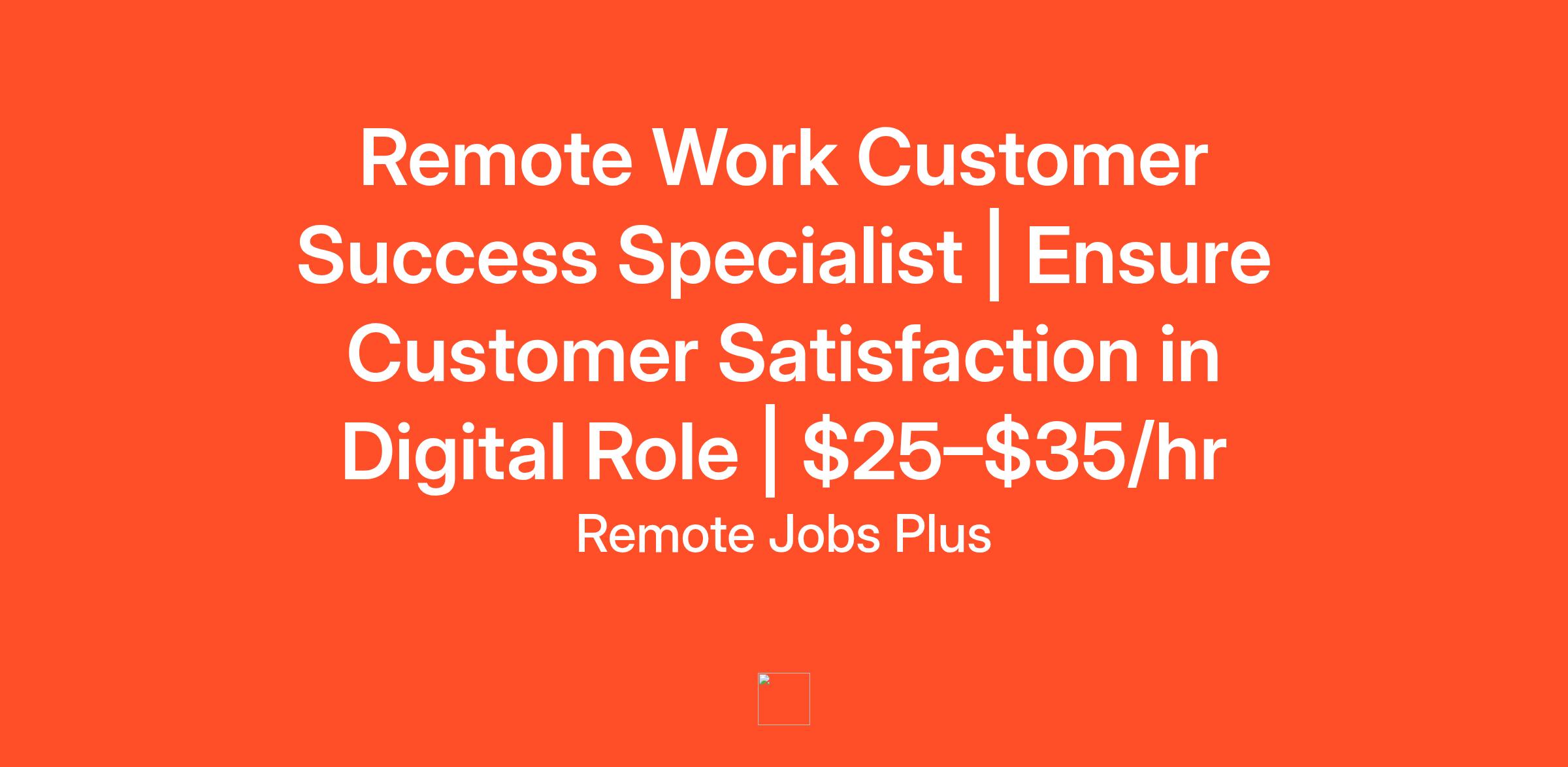 Remote Work Customer Success Specialist | Ensure Customer Satisfaction in Digital Role | $25–$35/hr