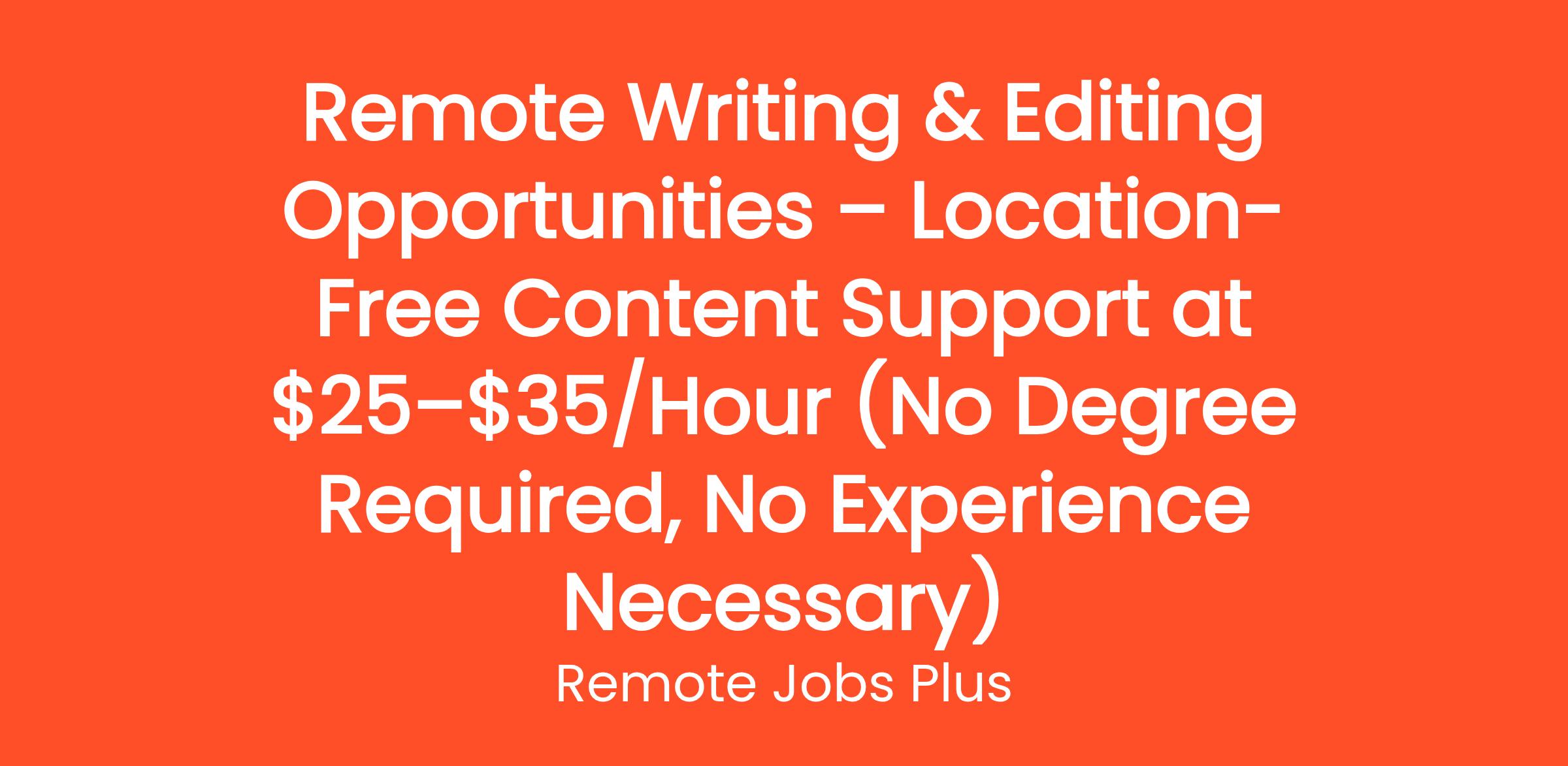 Remote Writing & Editing Opportunities – Location-Free Content Support at $25–$35/Hour (No Degree Required, No Experience Necessary)