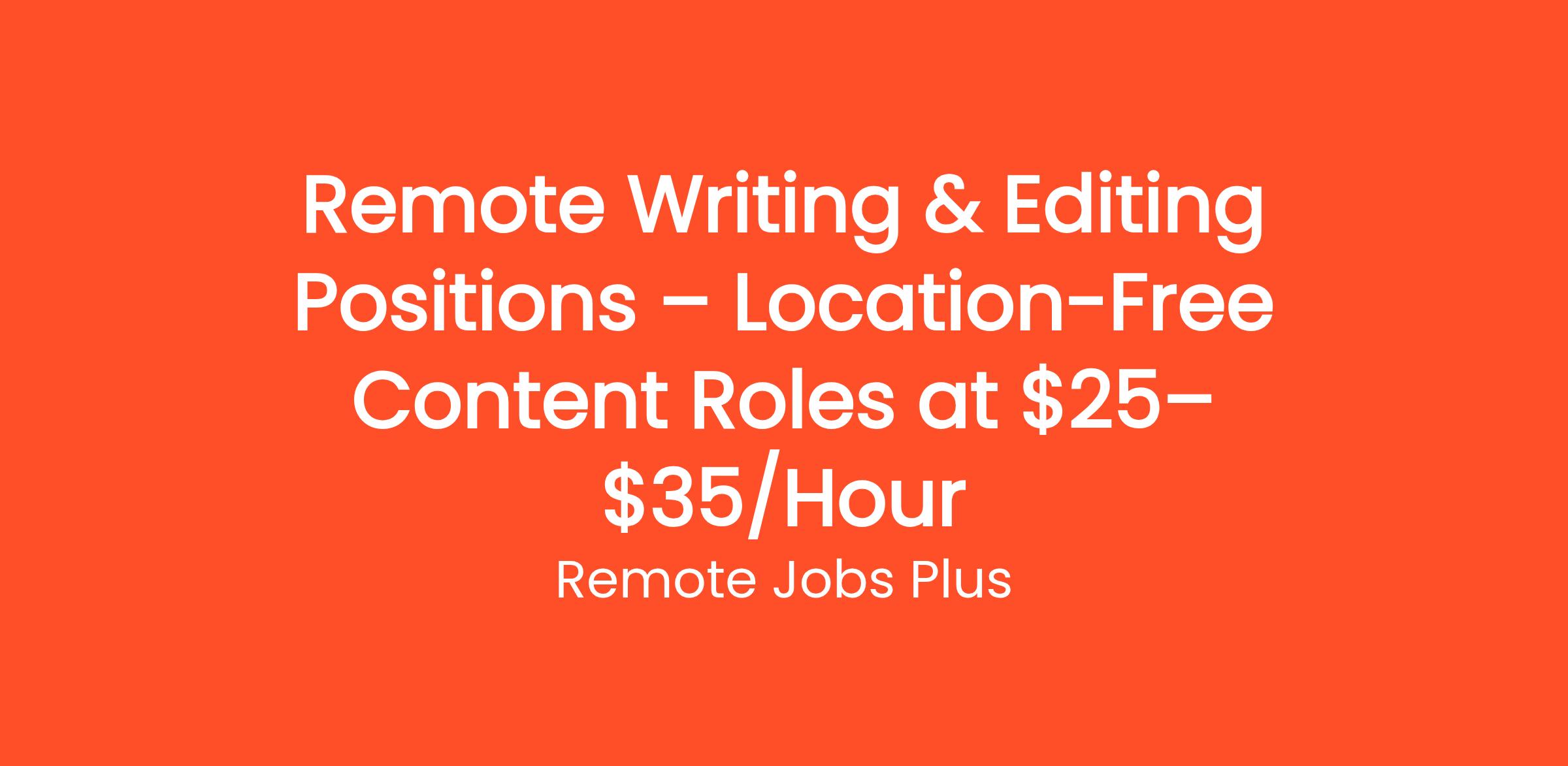 Remote Writing & Editing Positions – Location-Free Content Roles at $25–$35/Hour