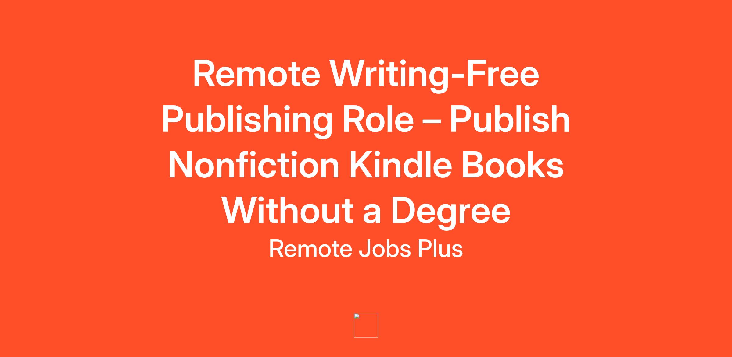 Remote Writing-Free Publishing Role – Publish Nonfiction Kindle Books Without a Degree