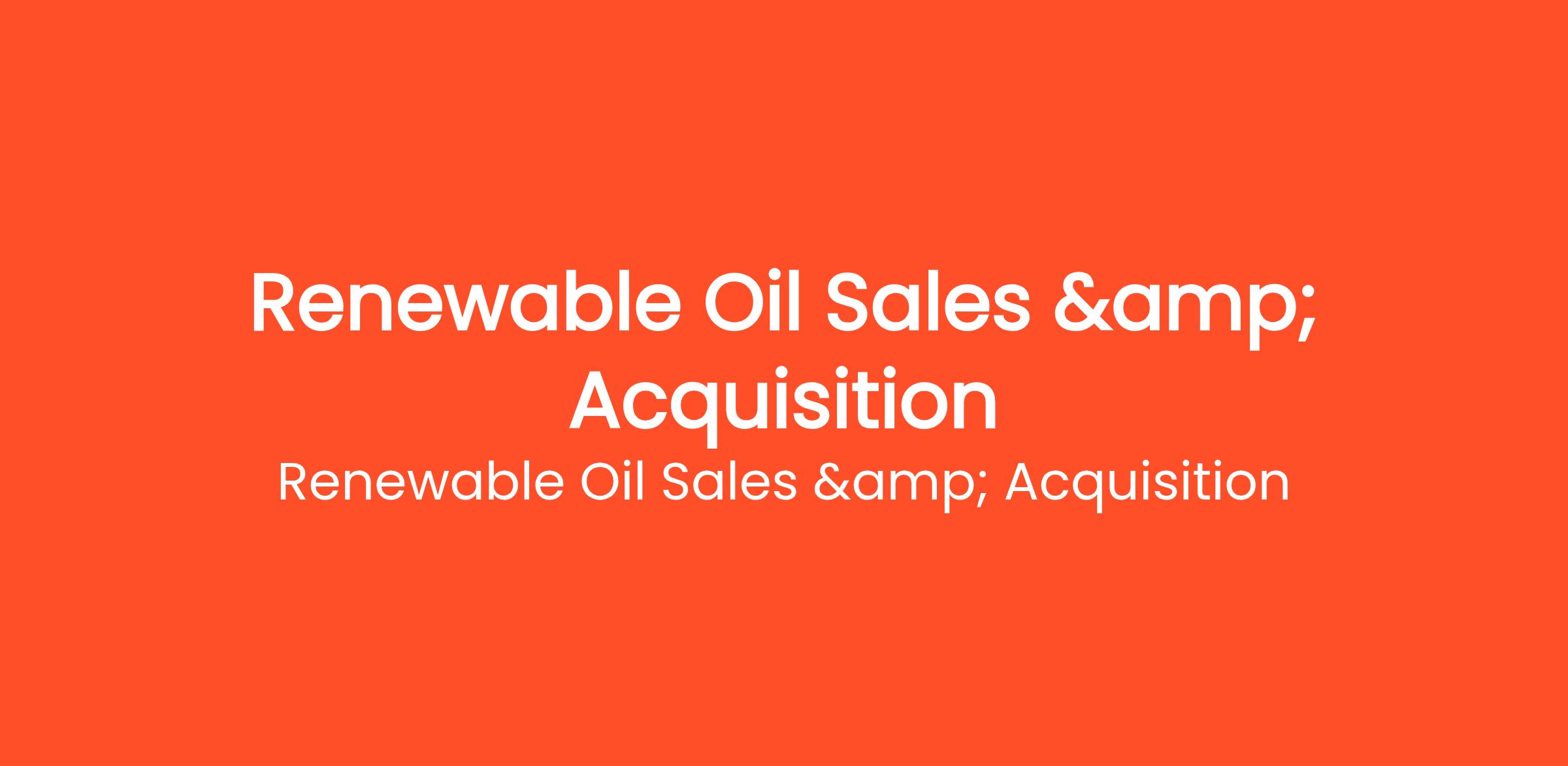 I represent ROIL Renewable Oil Company and I’m ready to hand the front line of our growth over to a driven sales professional. The job is equal parts B2C and B2B: homeowners need clean, renewable oil solutions while businesses require a dependable supplier they can trust... (Budget: $8 - $15 USD, Jobs: Account Management, B2B Marketing, Business Development, Internet Marketing, Lead Generation, Leads, Sales, Sales Management, Sales Promotion, Telemarketing)