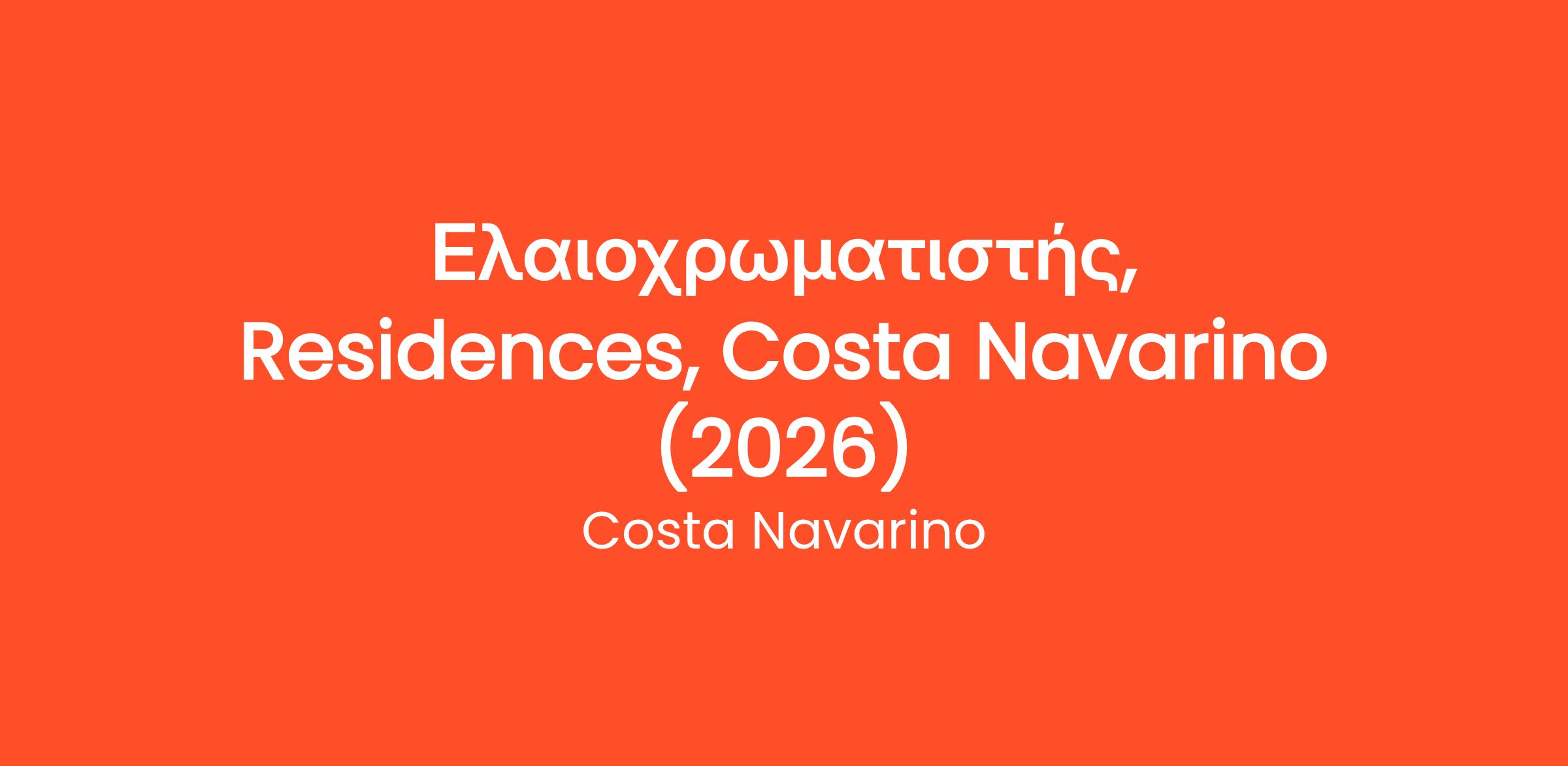 Η Costa Navarino επιθυμεί να προσλάβει Ελαιοχρωματιστή. Ο επιτυχημένος υποψήφιος έχει την ευθύνη της εύρυθμης λειτουργίας των εγκαταστάσεων και της σωστής διατήρηση "εικόνας", σύμφωνα με τους κανόνες ασφάλειας και τα standards της εταιρείας. Εξειδικευμένος τεχνίτης, ο οποίος ασχολείται με το βάψιμο των εξωτερικών ή εσωτερικών τοίχων, ντουλαπιών, θυρών, παραθύρων και άλλων επιφανειών με ελαιοχρώματα, βερνίκια και πλαστικά, εξασφαλίζοντας την προστασία και ενδεδειγμένη εμφάνισή τους. Εκτελεί εργασίες ξηράς δόμησης καθώς και εργασίες θερμοπρόσοψης.
