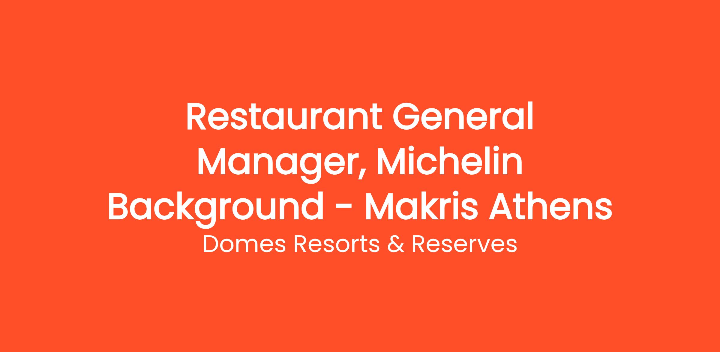 We are currently hiring for Athens, looking for a highly energetic and passionate Restaurant General Manager, joining our team at MAKRIS Athens by Domes.