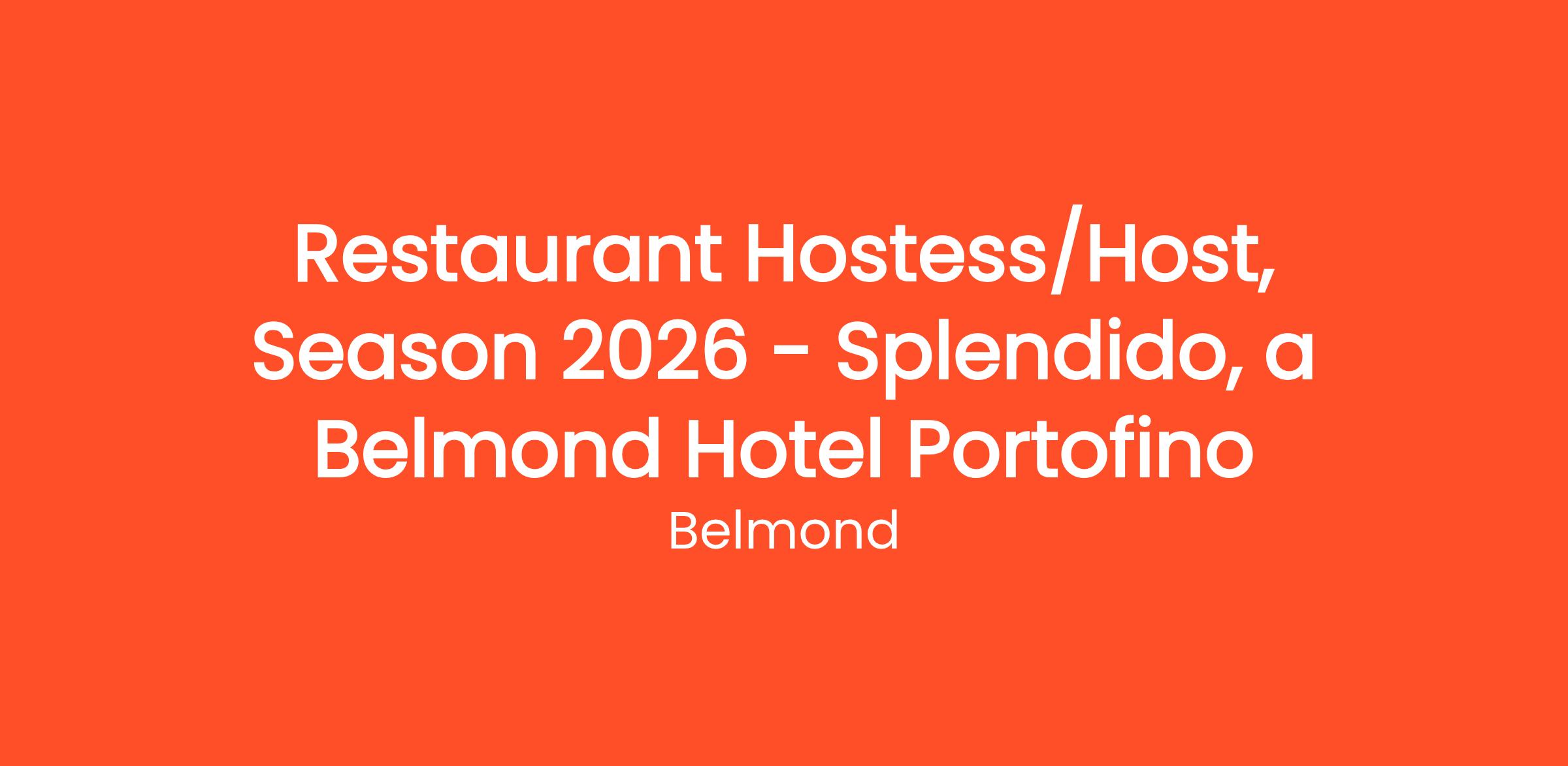 · Start date: April/May 2026 to End date: November 2026, with the aim of a continuous collaboration over subsequent seasons at Splendido and a career path;