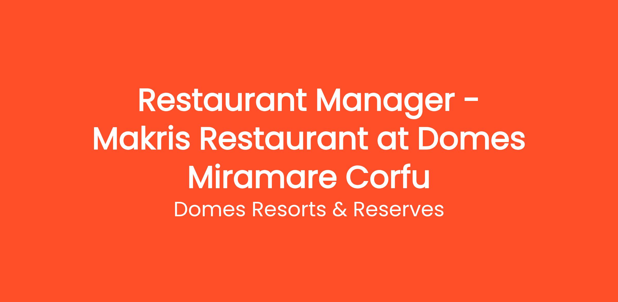 We are currently hiring a Restaurant Manager for Domes Miramare Corfu, The Luxury Collection, an ultimate luxury 5* resort, located in Corfu, to join our MAKRIS Restaurant team, for the 2026 season.