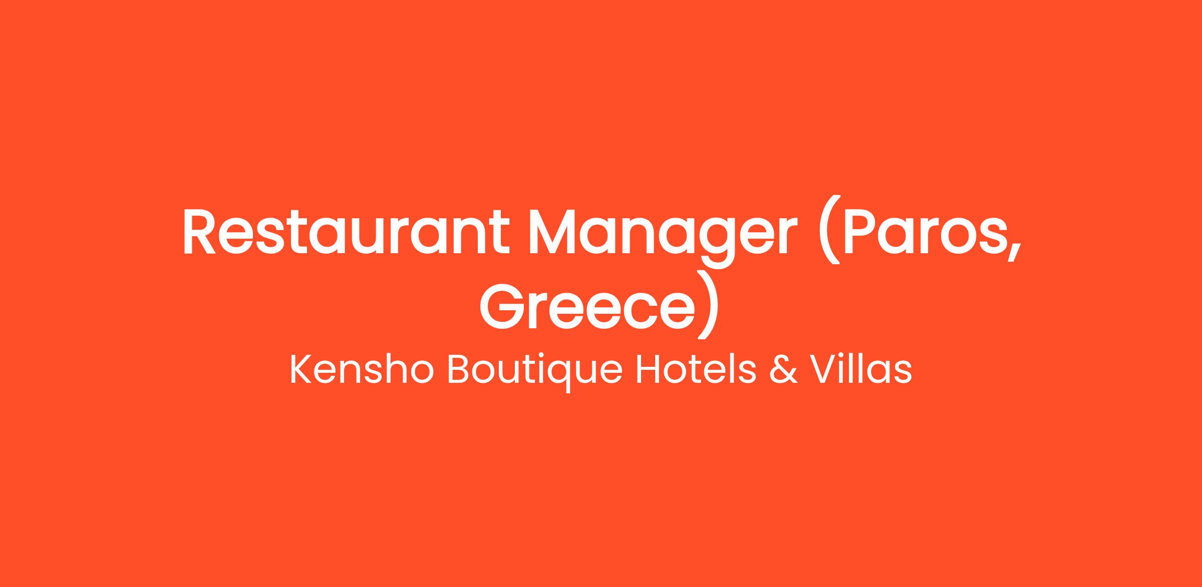 - 3–5 years of experience as a Restaurant Manager or senior supervisor in a luxury resort or fine dining environment.