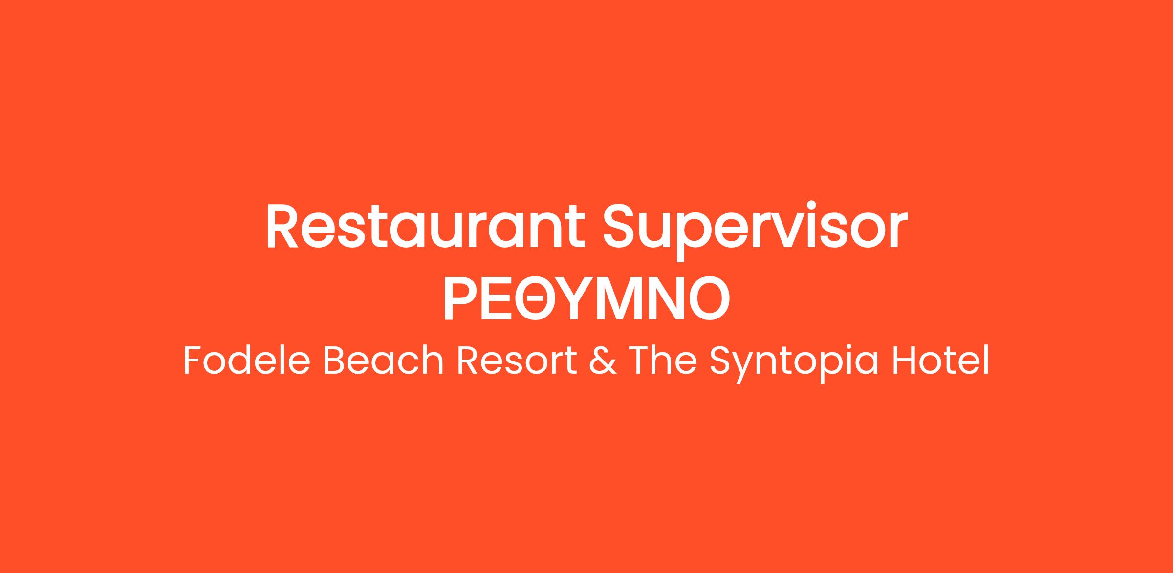 Το ξενοδοχείο 4* The Syntopia Hotel στο Ρέθυμνο επιθυμεί να προσλάβει για τη σεζόν 2026: Restaurant Supervisor
