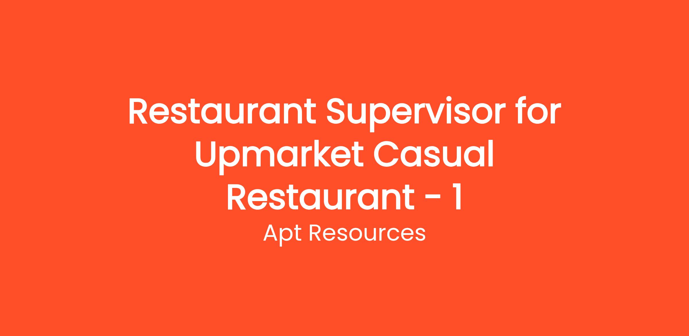 Apt Resources is seeking a talented and dynamic Restaurant Supervisor to join the team at an esteemed upmarket casual restaurant in Dubai. As a Restaurant Supervisor, you will be instrumental in delivering an exceptional dining experience while ensuring the efficient operation of the restaurant. If you have a passion for food, drink, and hospitality, and have a holistic understanding of customer satisfaction, we invite you to apply!
