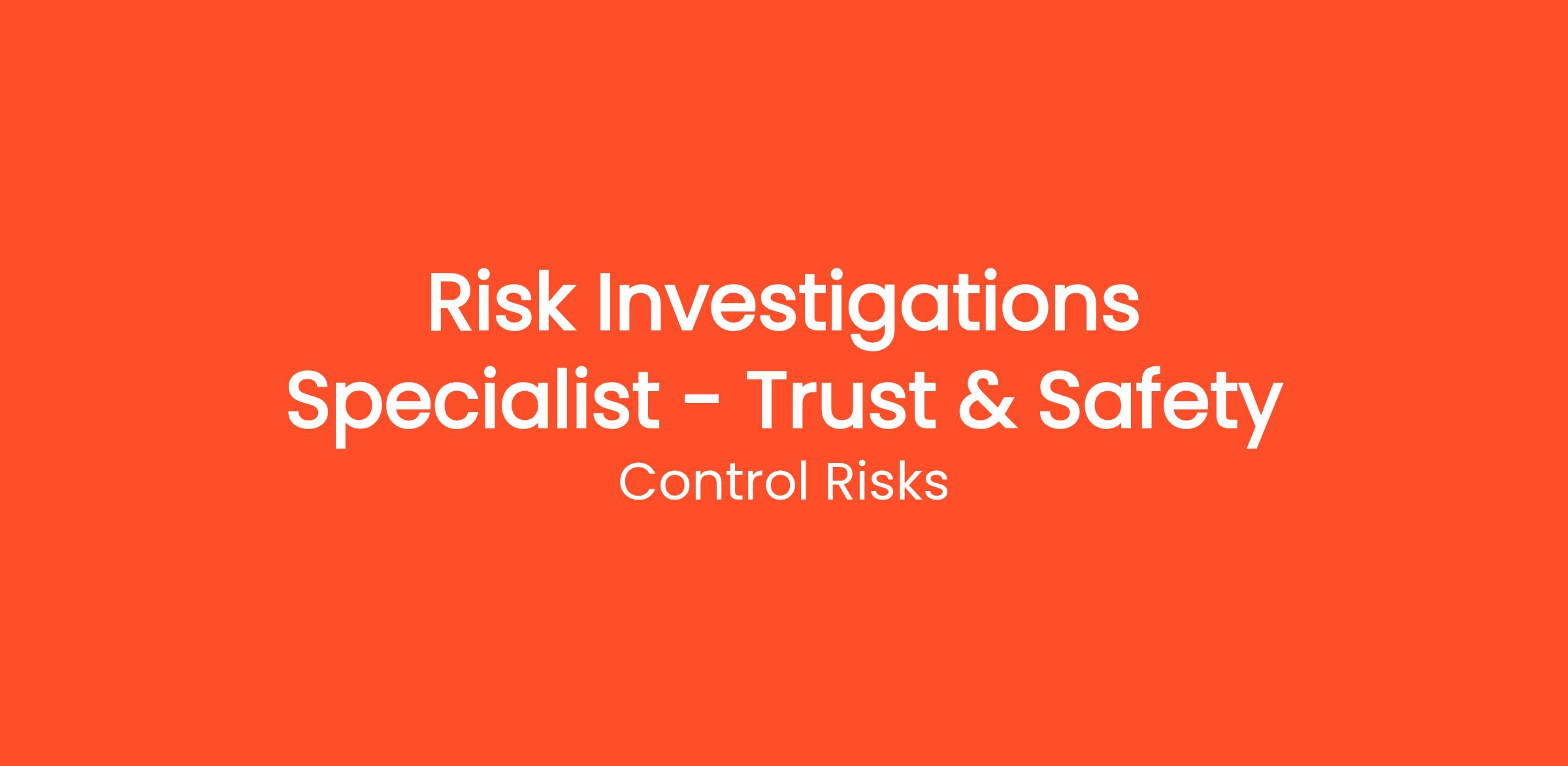Control Risks’ Embedded Consulting team is hiring a Risk Investigations Specialist to join our team supporting a major tech client. This role will work with their Offline Risk’s team to help monitor and mitigate offline risks to the company as well as their user base. You will be tasked with mitigating risks associated to organized crime, human trafficking and other offline crimes.