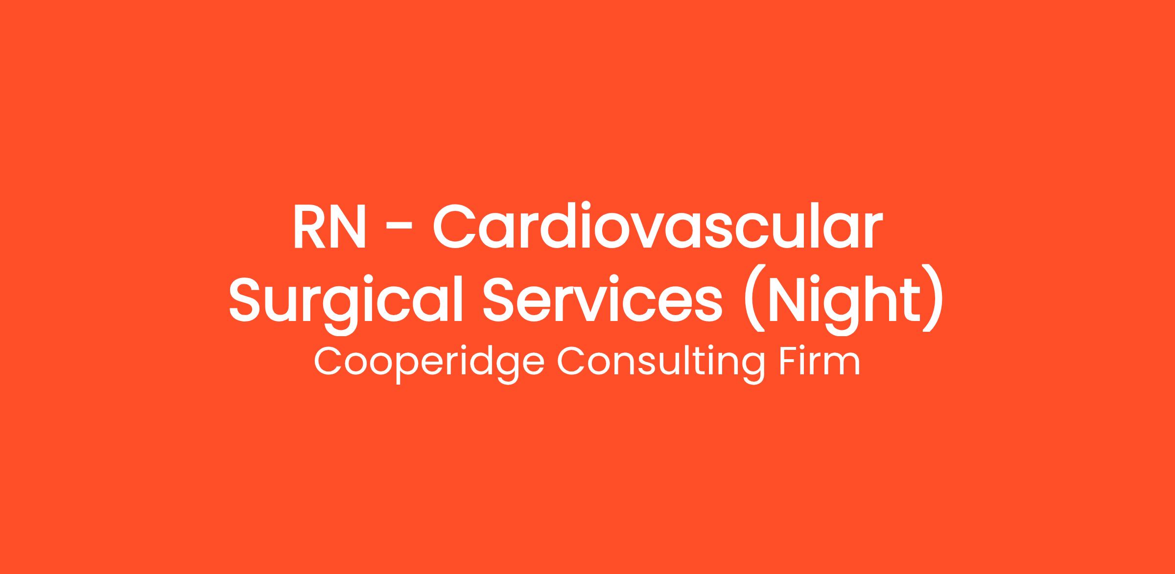 Cooperidge Consulting Firm is seeking a Registered Nurse (RN) – Cardiovascular Surgical Services for a top healthcare client in Roanoke, VA.
