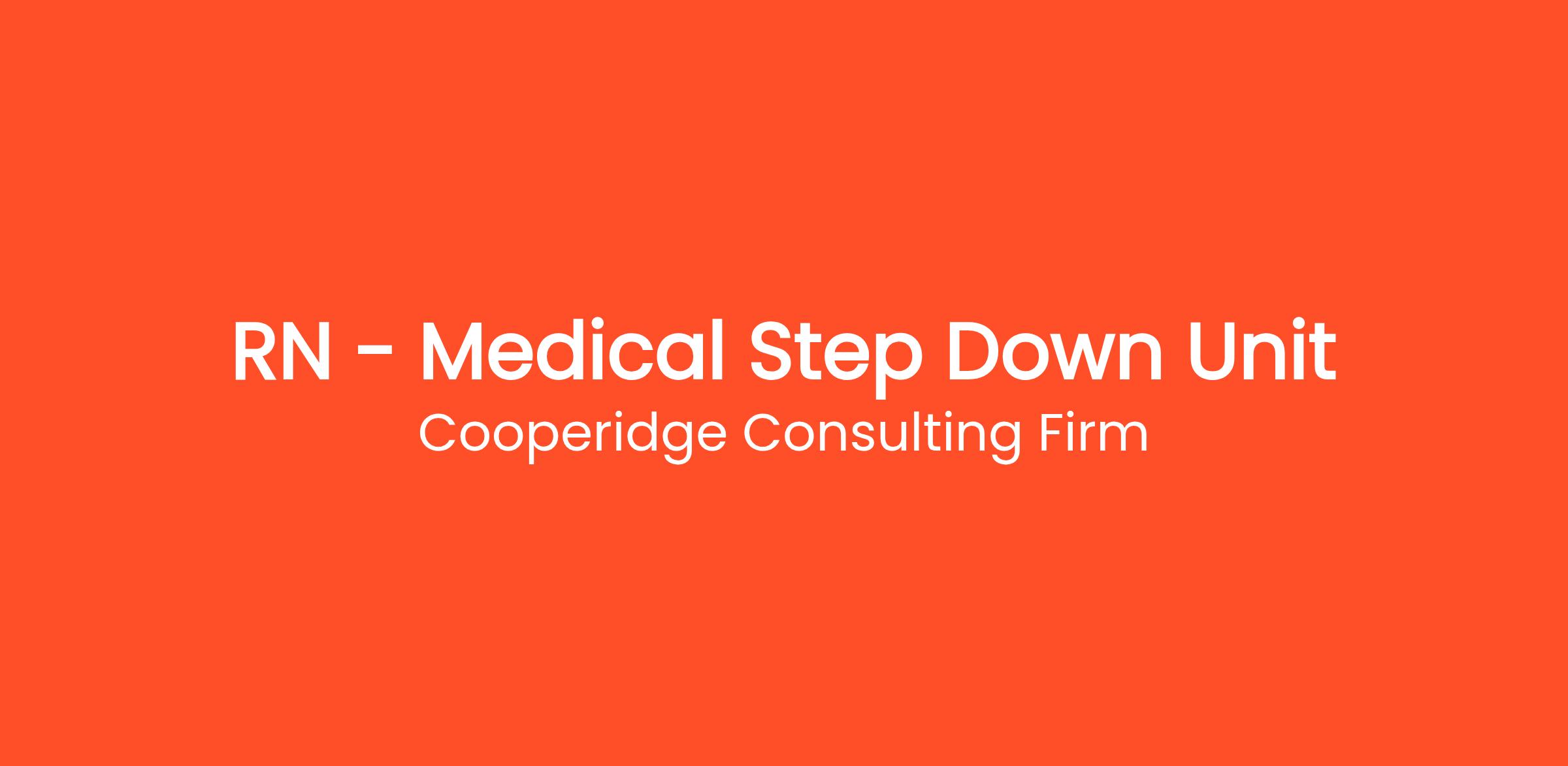 Cooperidge Consulting Firm is seeking a Registered Nurse (RN) – Medical Step Down Unit for a top healthcare client in Roanoke, VA.