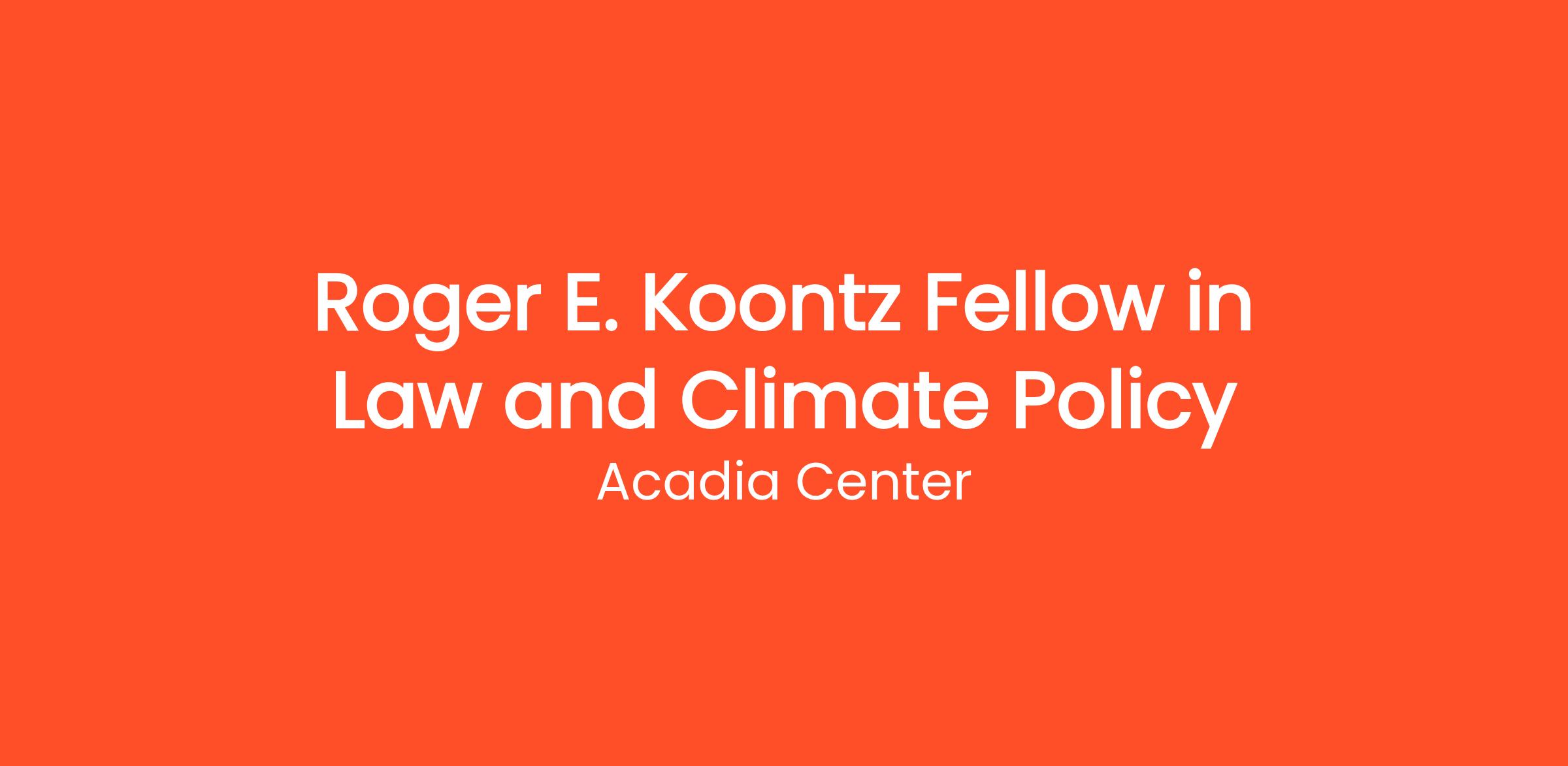 Acadia Center is seeking motivated law and policy students to apply for its Roger E. Koontz Fellowship in Law and Climate Policy. The Koontz Fellow will work with Acadia Center staff – policy experts, researchers, attorneys, and communications professionals– on projects that directly impact the organization's work. Depending on the work, the Fellow may have the opportunity to meet with policymakers, attend public meetings, and engage in coalition interactions. Projects will be assigned based on skills and interests and could include the following: