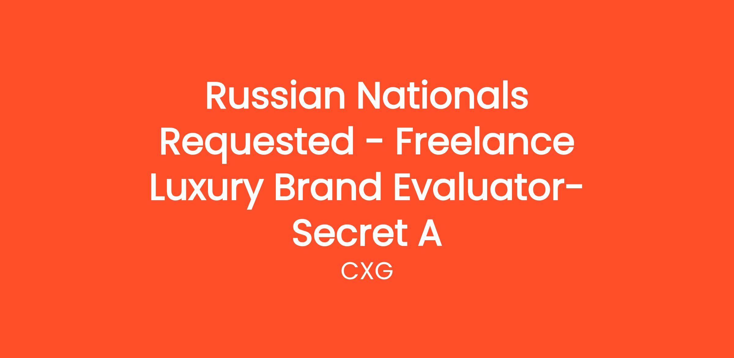 Russian Nationals Requested - Freelance Luxury Brand Evaluator- Secret A