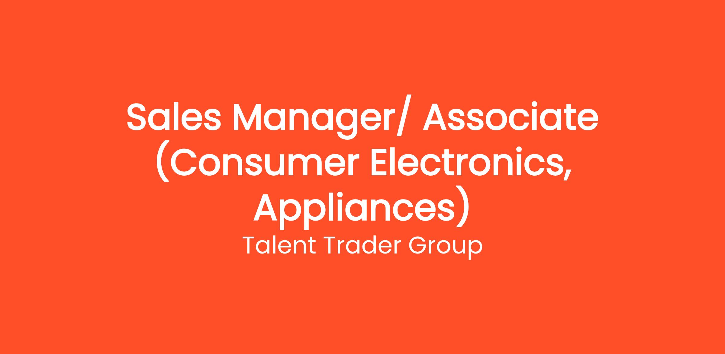 Sales Manager/ Associate (Consumer Electronics, Appliances)