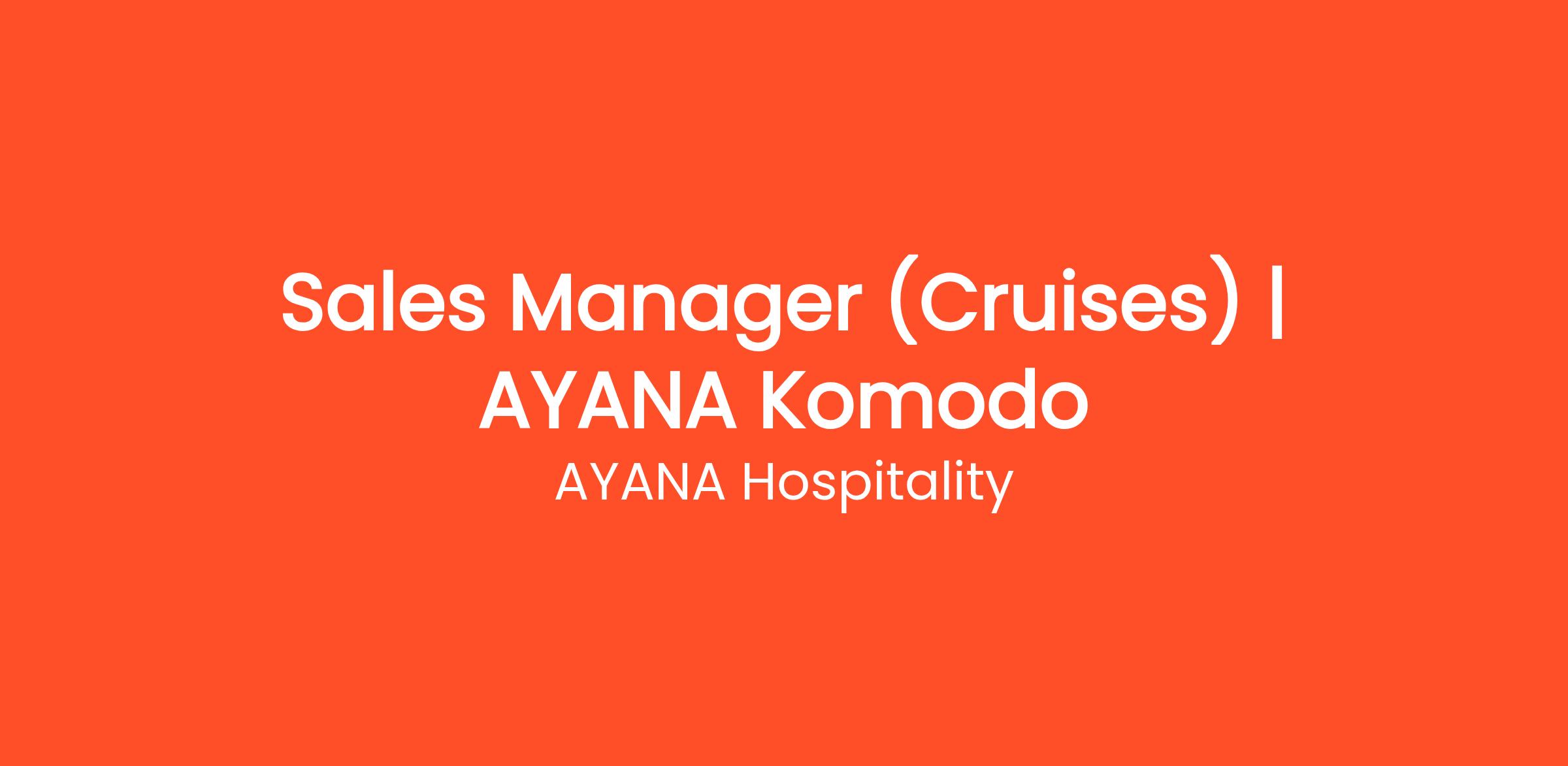 The Sales role plays a key part in supporting AYANA Cruises’ growth strategy by driving sales performance, strengthening customer relationships, and maximizing profitability. Reporting directly to the Cruise Manager, this position requires strong product knowledge, analytical skills, and the ability to build long-term business partnerships while ensuring seamless coordination with internal departments.