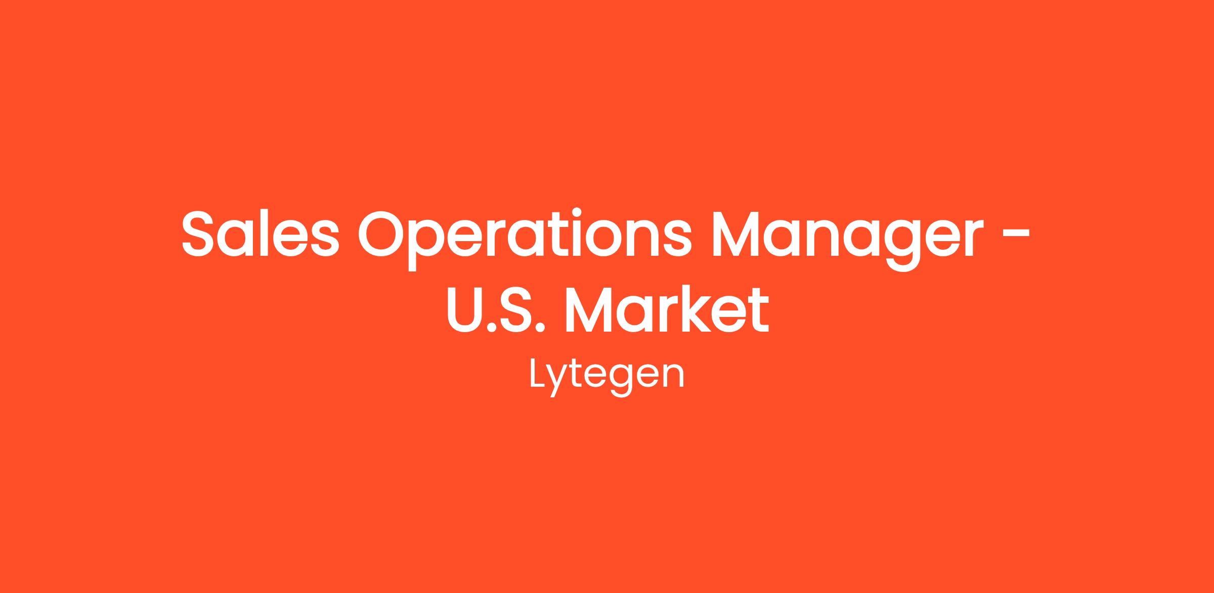 About the Role : Sales Operations Manager (U.S Market)