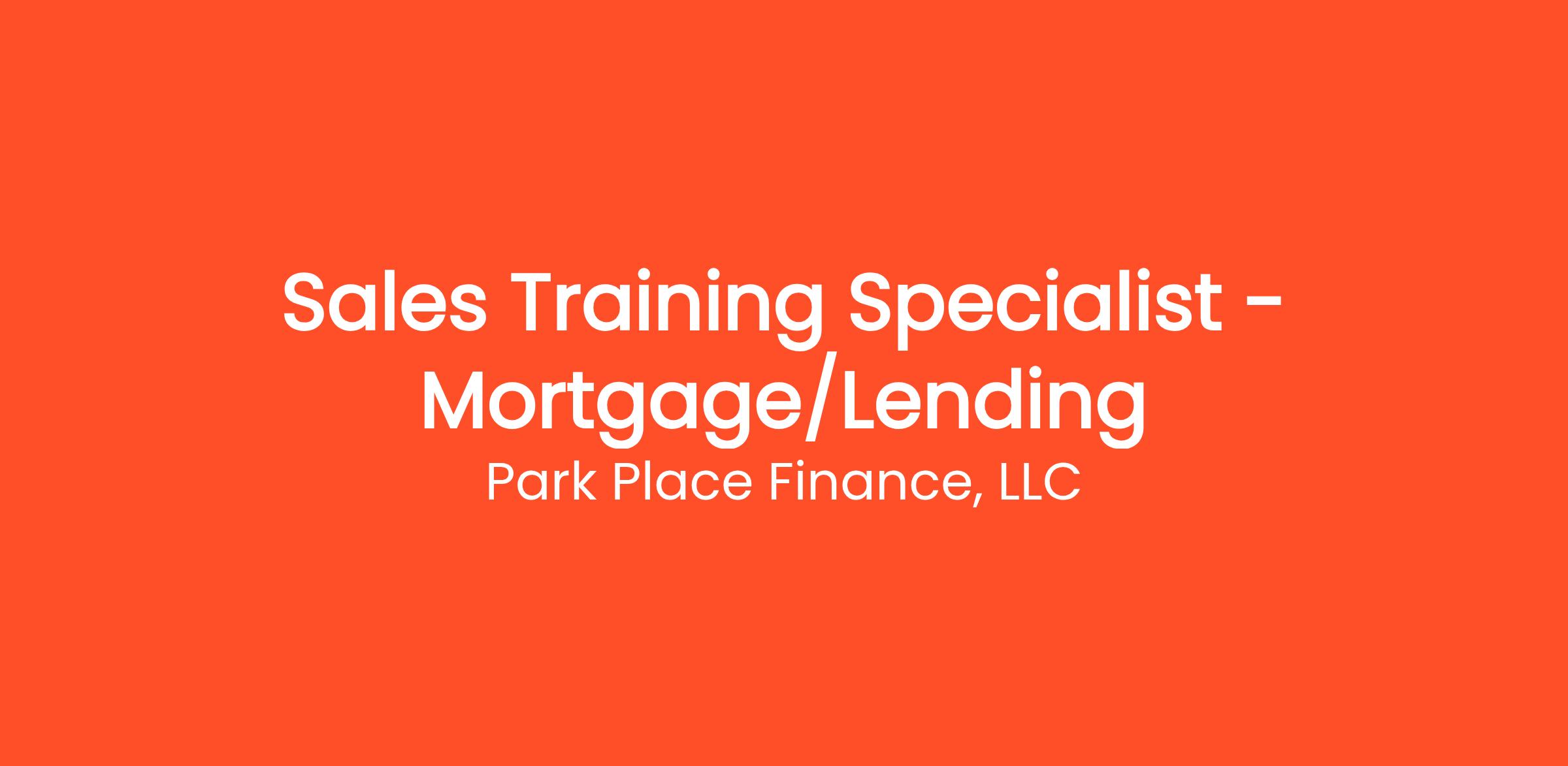 Park Place Finance is seeking an experienced and dynamic Sales Training Specialist to lead the growth and development of our mortgage/lending sales team. This role is pivotal in building a high-performing sales force by equipping both new and seasoned sales representatives with the knowledge, skills, and tactics to excel in today’s competitive lending market.