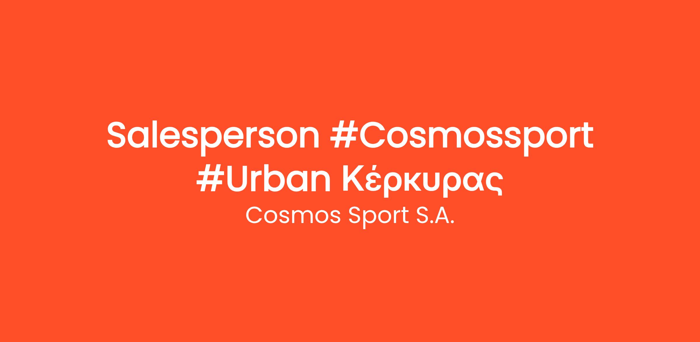 Αναζητούμε Salesperson για το κατάστημα Cosmos Sport Urban! Αν είσαι ομαδικός παίκτης & λατρεύεις τον αθλητισμό και το athleisure στυλ, τότε θέλουμε να σε γνωρίσουμε!