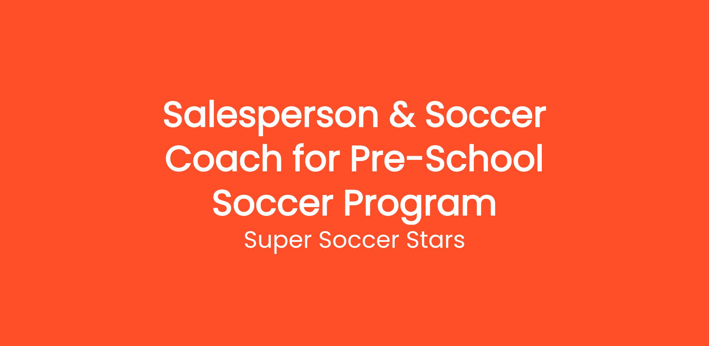 Do you have a passion for soccer and working with children? We are seeking a Salesperson & Soccer Coach to join our team at Super Soccer Stars, a leading pre-school soccer program. In this role, you will not only be responsible for selling our program to preschools and early childhood centers, but also for delivering high-quality soccer coaching sessions for children.