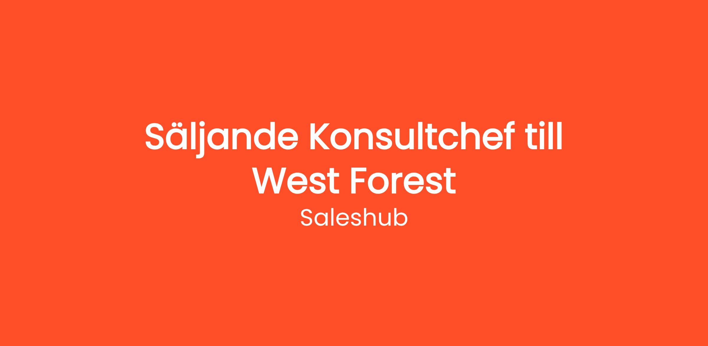I denna rekrytering samarbetar West Forest Technologies med rekryteringsföretaget Saleshub. Har du frågor eller funderingar kring tjänsten är du välkommen att kontakta ansvarig rekryterare på alexander.gohari@saleshub.se