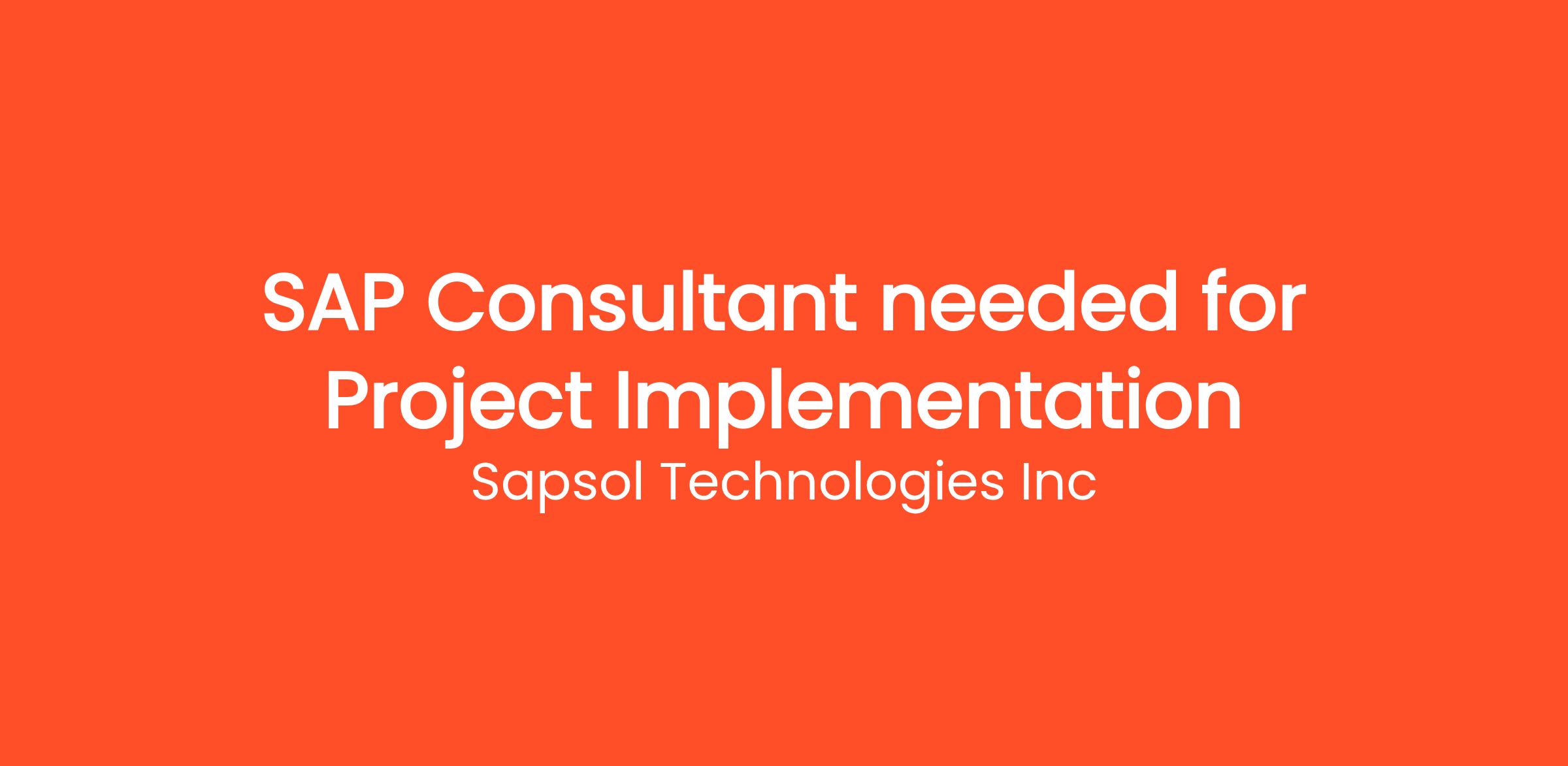 SAPSOL technologies Inc is looking for SAP consultants in the FICO, SD, MM, HCM, Success Factors, BIBO, PS, PP, ABAP, Hana Cloud, and BASIS to implement the project for SPIL (SAPSOL Product Innovation Lab) project program. We are specialized SAP, Cloud, and Big Data consulting company. The project is ideal for candidates who want to work in real time world and new technology areas to get gainful employment after completion of the program.