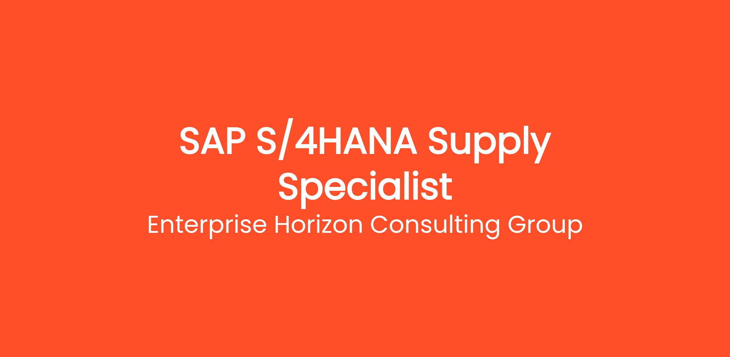 Enterprise Horizon is seeking an experienced SAP S/4 HANA Supply Specialist to join our team in support of our DoD customer. The ideal candidate will have in-depth knowledge of SAP Supply Modules (MM, SD, PP, IM/WM, etc.) and strong S/4 HANA experience.