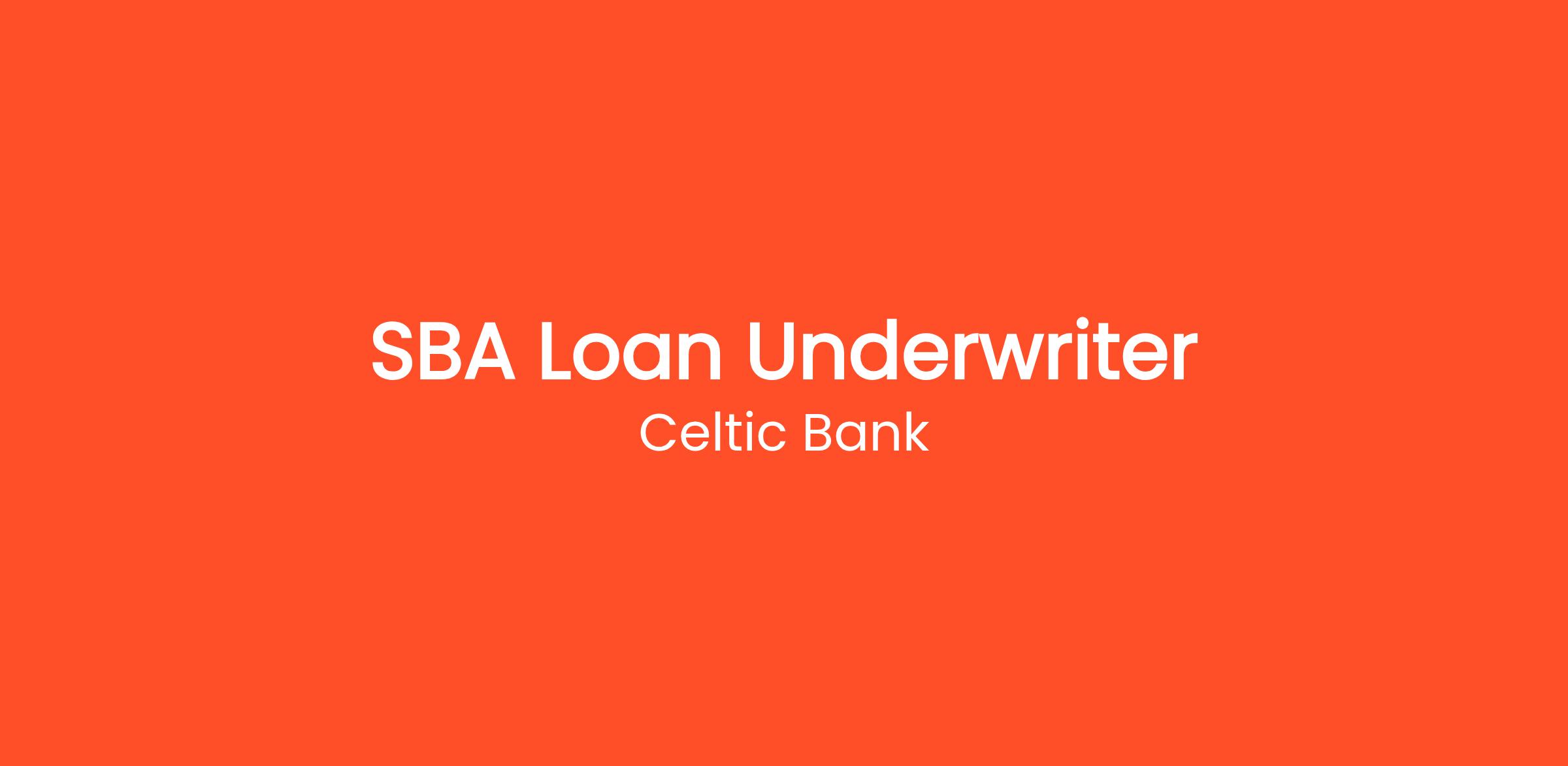 As one of the top five SBA lenders in the country, Celtic Bank is small enough that managers know you and recognize your hard work, but big enough that you’ll be challenged every day. Celtic Bank gives underwriters the opportunity to gain deep commercial credit knowledge and broad experience across a range of different industries and business types.