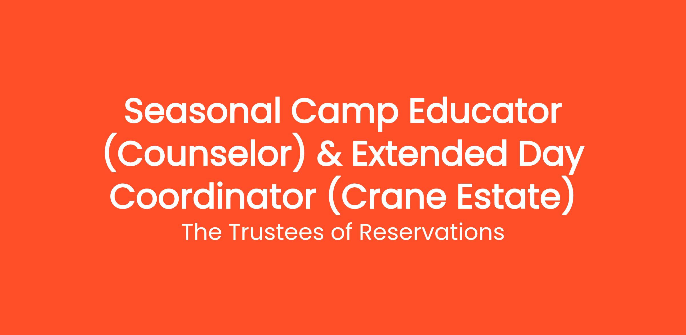 This is a seasonal, non-exempt position working 20-25 hours/week reporting directly to the SummerQuest Assistant Camp Director and The Crane Estate’s School and Youth Programs Manager/Camp Director.