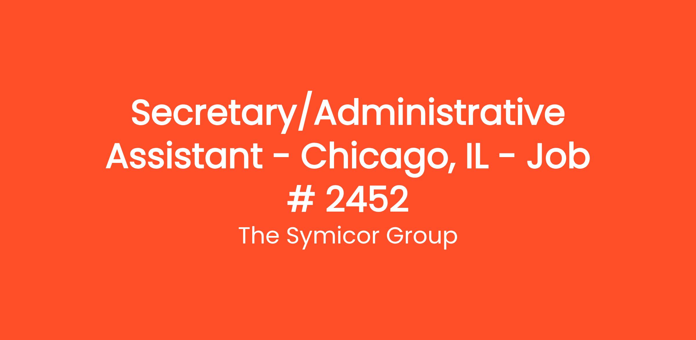 We are seeking to fill a Secretary/Administrative Assistant role in the greater Chicago, IL market. The Secretary/Administrative Assistant will perform a variety of general administrative support duties.