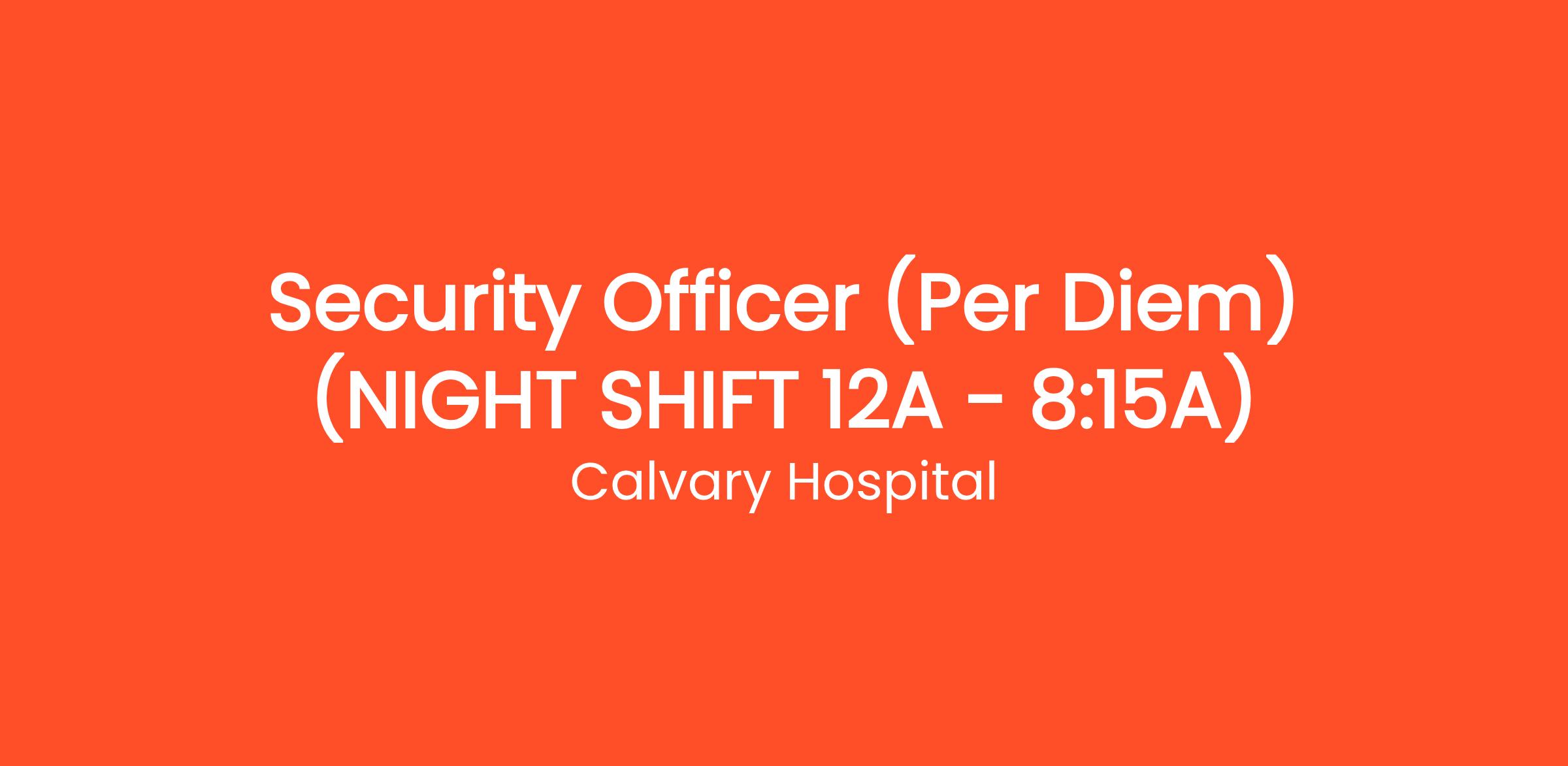 Our per diem Security Officers are required to work WEEKENDS and HOLIDAYS as well as an ON-CALL basis. Patrols Hospital and grounds to prevent fires, theft, vandalism, and illegal entry.
