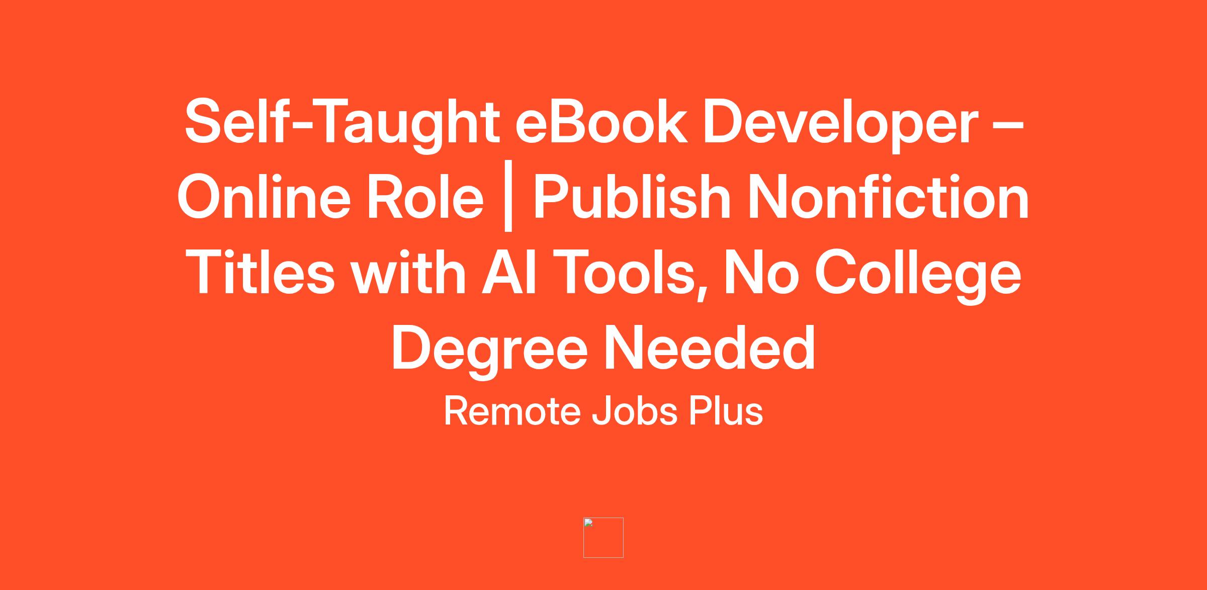 Self-Taught eBook Builder, you’ll learn to create, format, and publish nonfiction books to Amazon’s Kindle platform — without writing anything manually or hiring freelancers.This is a self-driven, royalty-based remote publishing role. You’ll follow a structured content production system powered by artificial intelligence and beginner-friendly templates. Each book you publish becomes a permanent digital product that earns passive monthly royalties. You own the books. You earn from them indefinitely.There are no clients, no freelance gigs, and no design skills needed. Just a reliable computer, a few hours per week, and the ability to follow a repeatable checklist-based system.