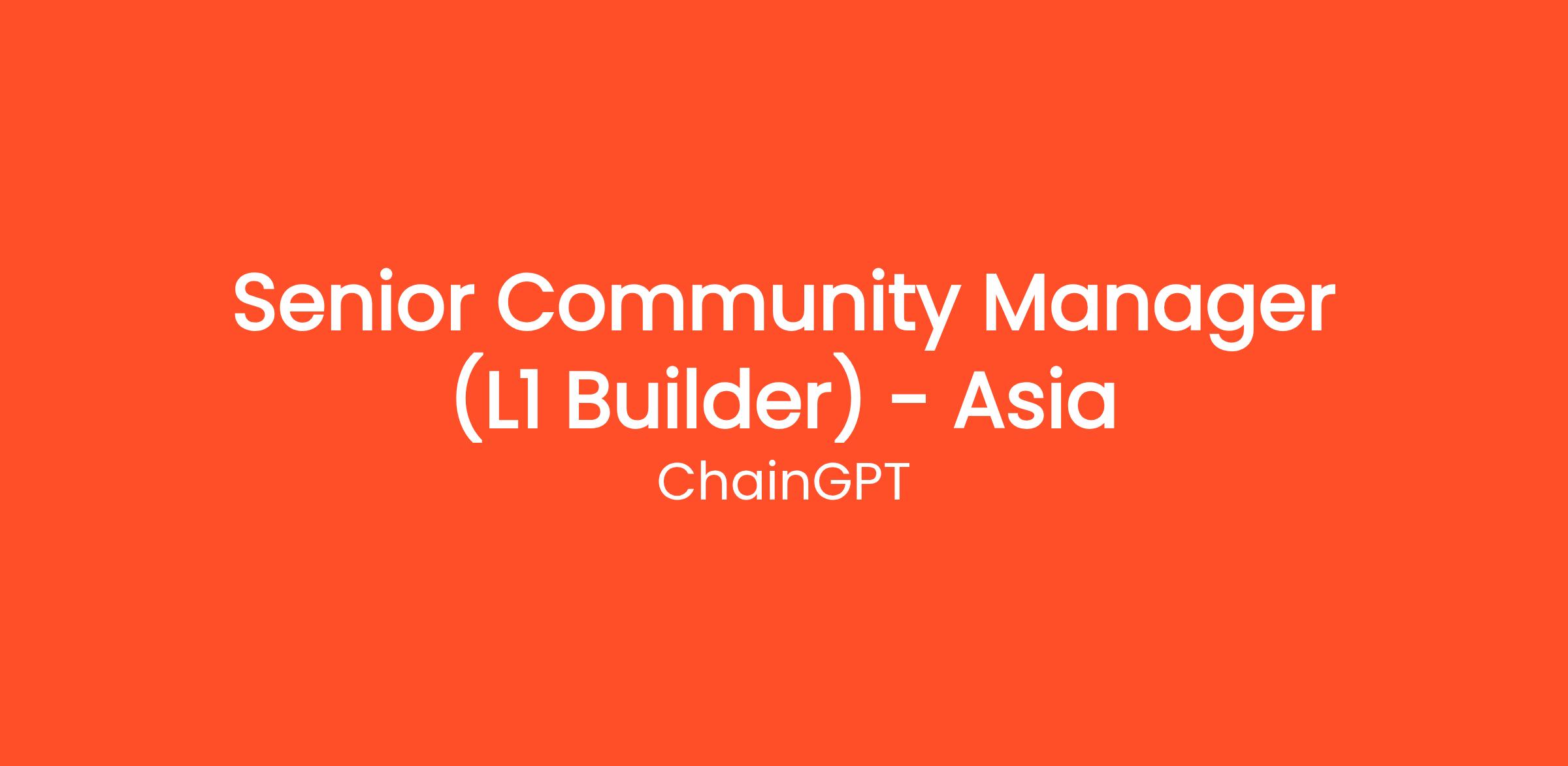 At ChainGPT, we value Trust, Effective Speed, Innovation, and Growth. As our Senior Community Manager (L1 Builder), you will embody these core values and have the opportunity to contribute to our culture and help drive our success. Join us on this exciting journey as we shape the future of blockchain and crypto technology.