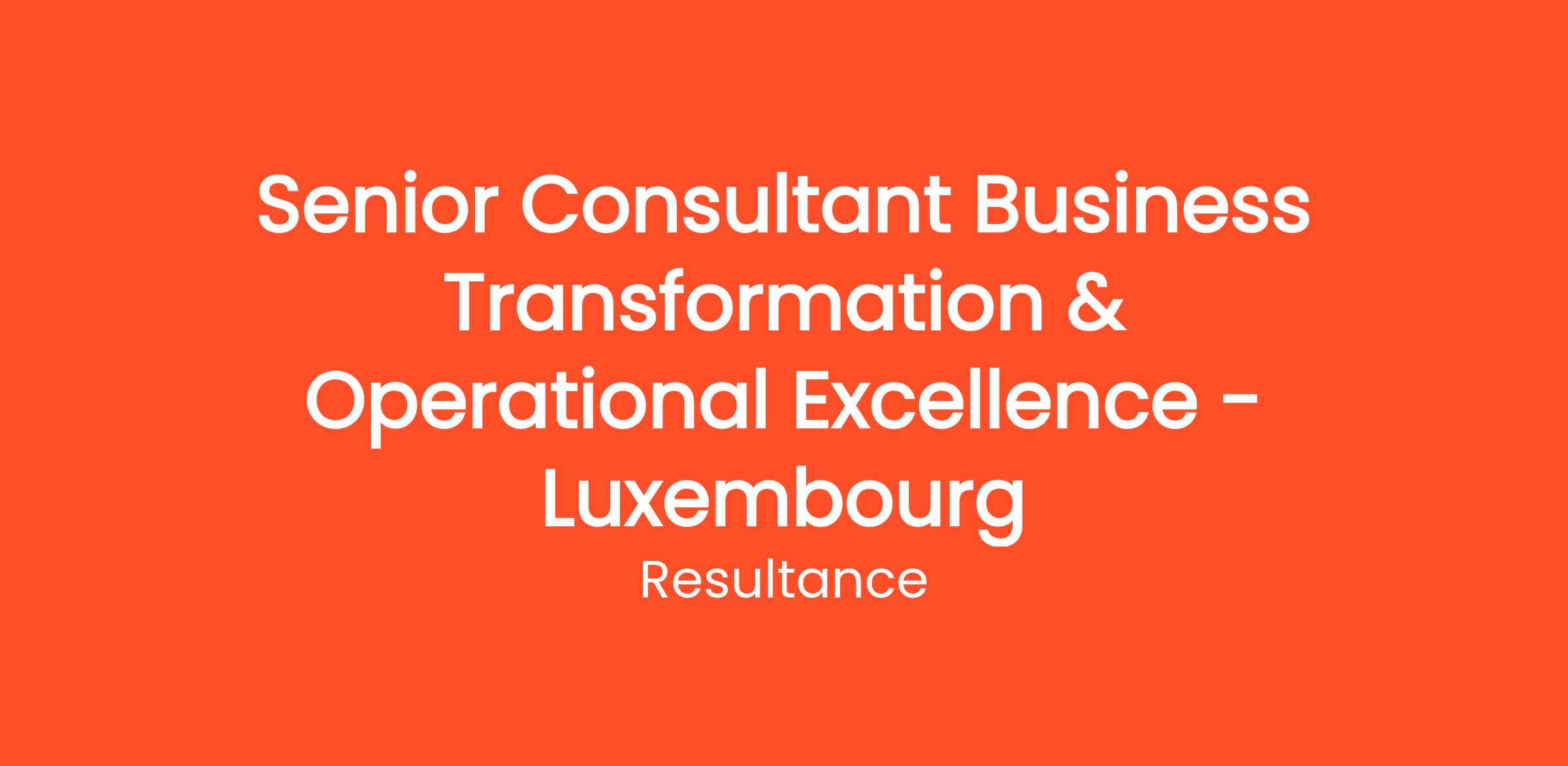 Senior Consultant Business Transformation & Operational Excellence - Luxembourg
