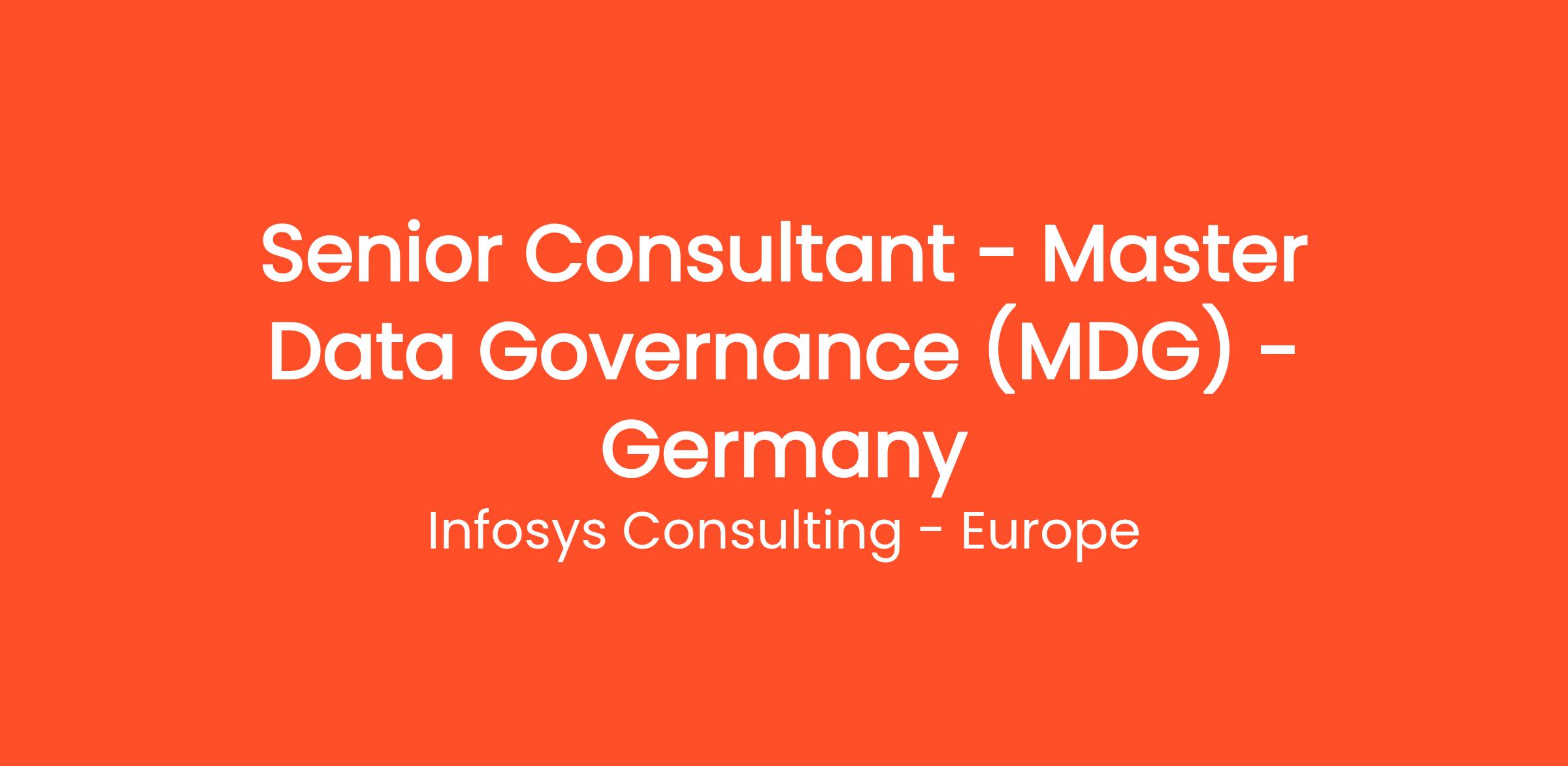 As a MDG senior consultant, your role will include the following;