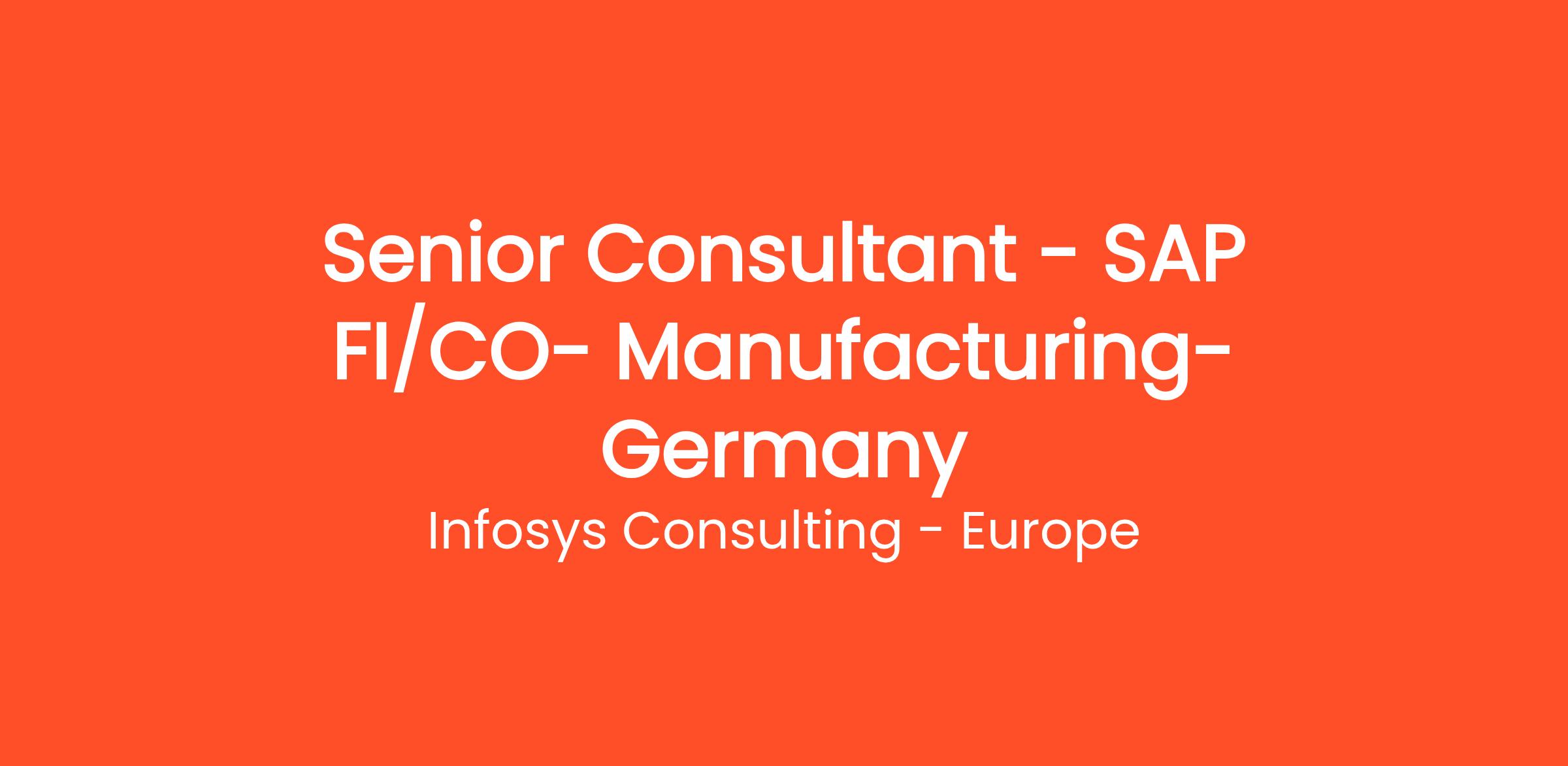 Senior Consultant - SAP FI/CO- Manufacturing