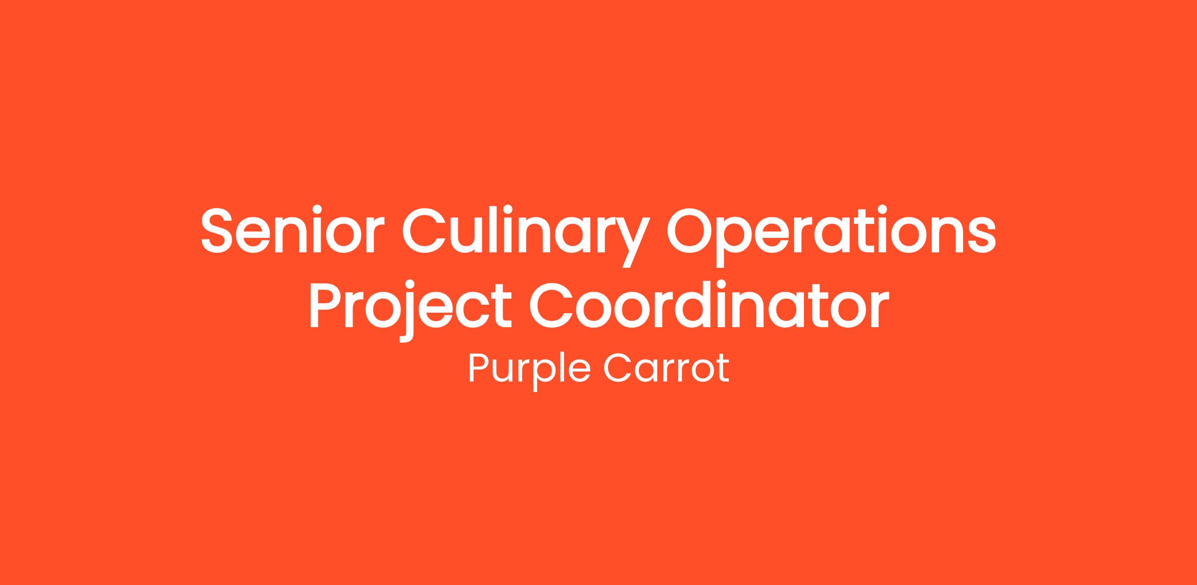 As the Senior Culinary Operations Project Coordinator, you will be focused on managing timelines, deliverables, and workflows for meal launches (Meal Kits & Ready-to-Eat), while supporting the documentation, coordination, and administrative tasks that keep projects moving. Success in this role means deadlines are met, roadblocks are surfaced early, and customers experience consistent value across all Purple Carrot categories.
