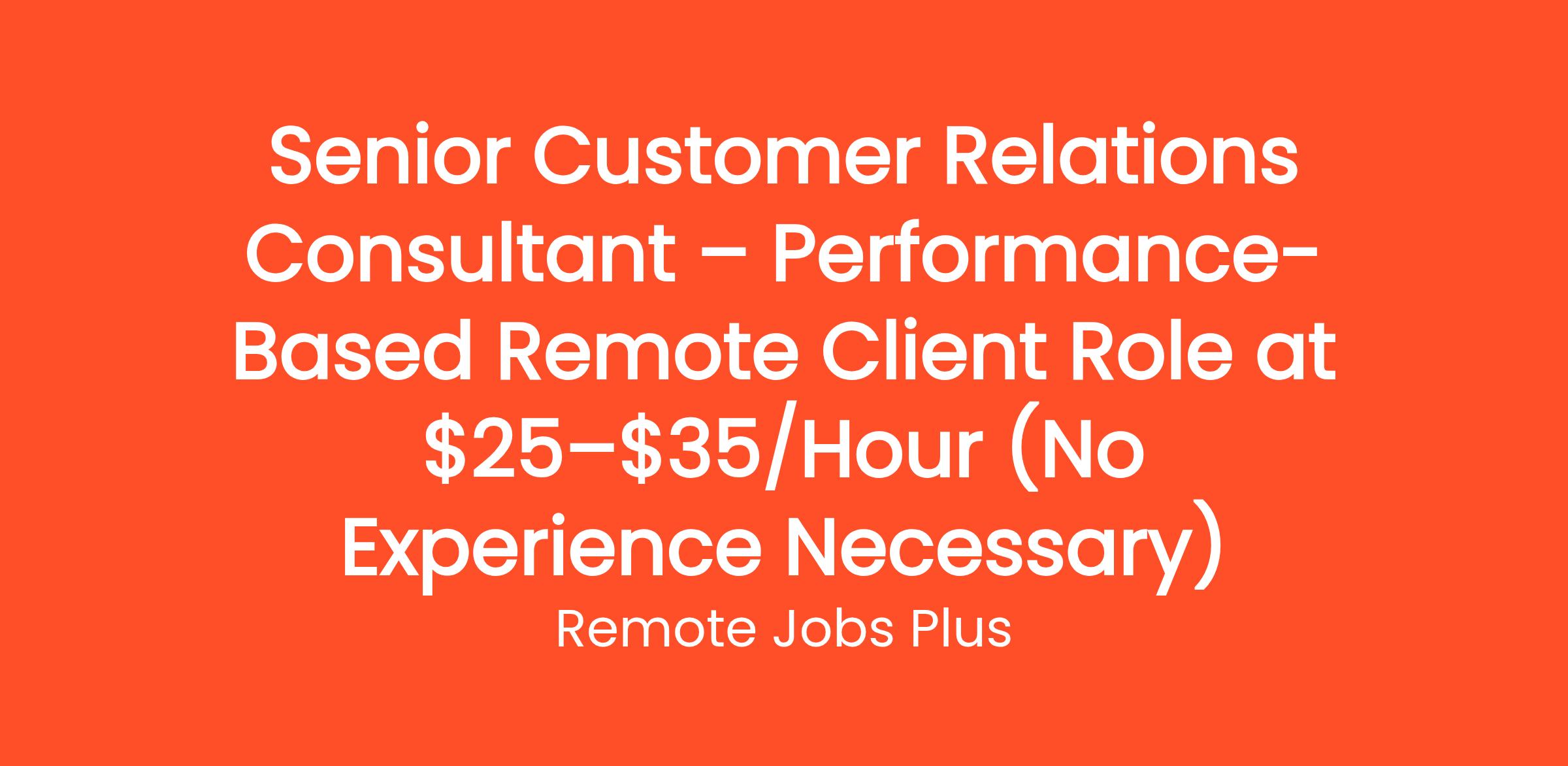 Senior Customer Relations Consultant – Performance-Based Remote Client Role at $25–$35/Hour (No Experience Necessary)