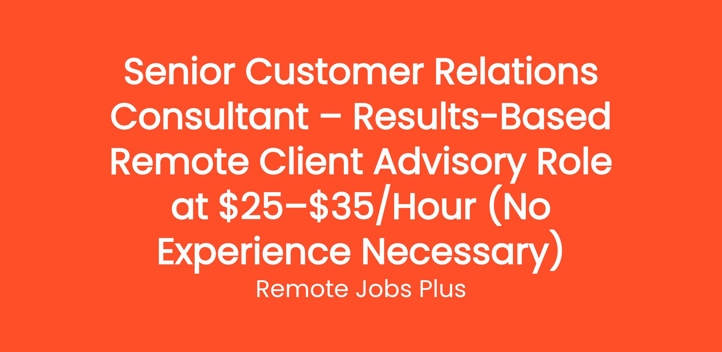 Senior Customer Relations Consultant – Results-Based Remote Client Advisory Role at $25–$35/Hour (No Experience Necessary)
