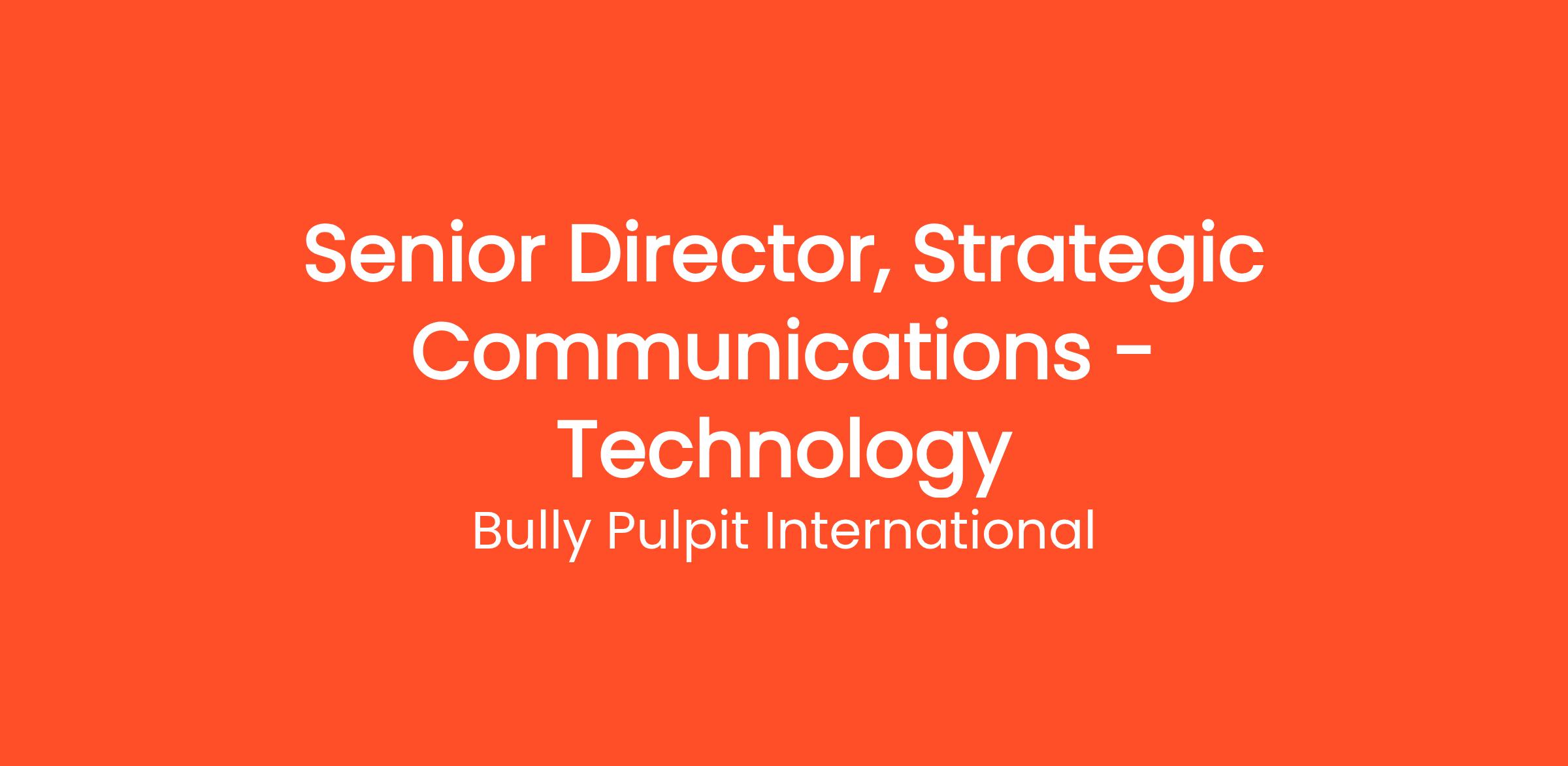 We are seeking an outcomes-driven Senior Director to join our Strategic Communications practice for a portfolio of high-stakes Technology clients. This is a leadership position for a proven professional who can operate at the intersection of business, politics, and public policy, combining strategic consulting rigor with the agility and urgency of a modern political campaign. This role reports to a Partner.