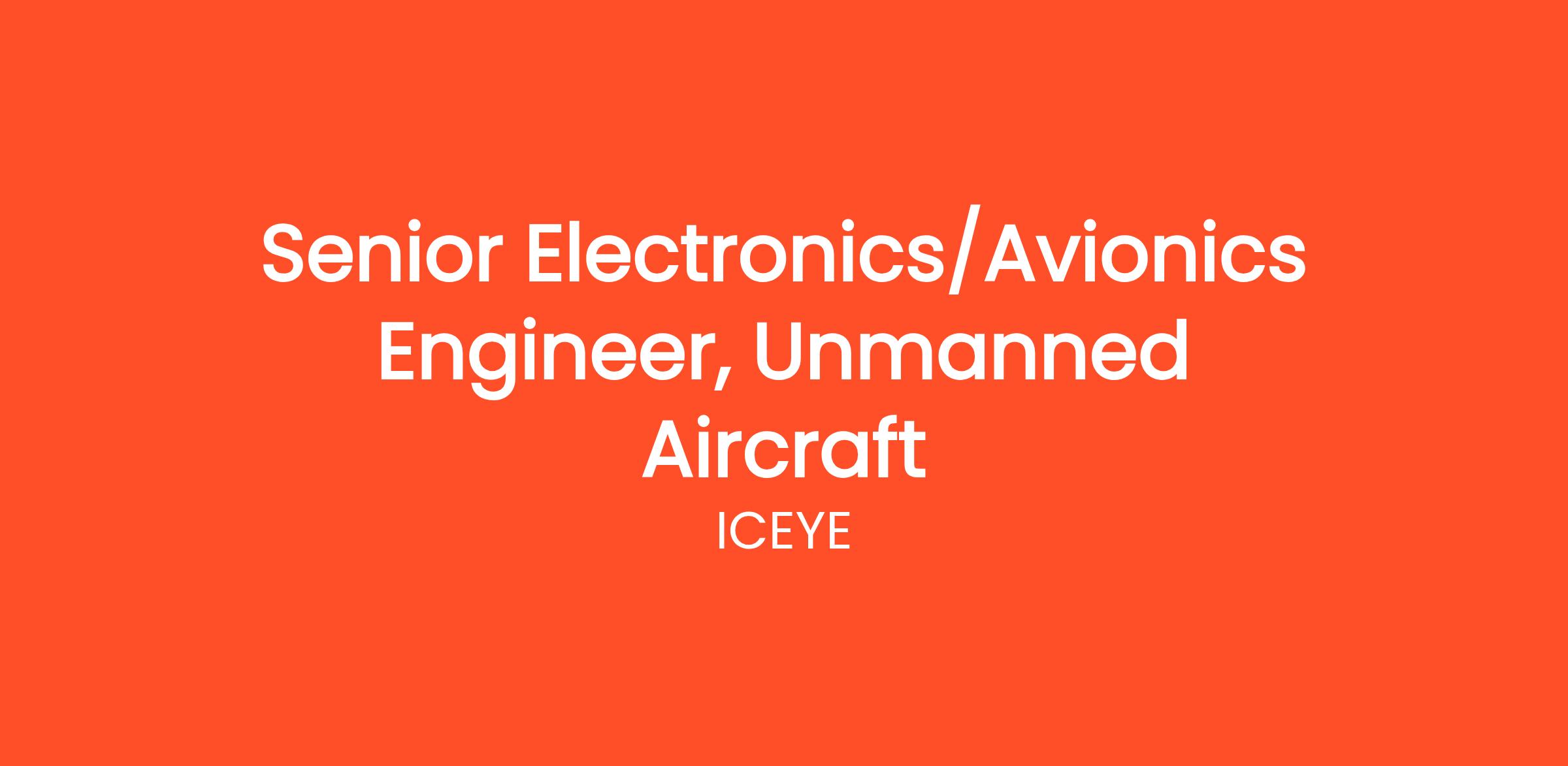 ICEYE is looking for a Senior Electronics/Avionics Engineer experienced in development of unmanned systems to join its aircraft development team.