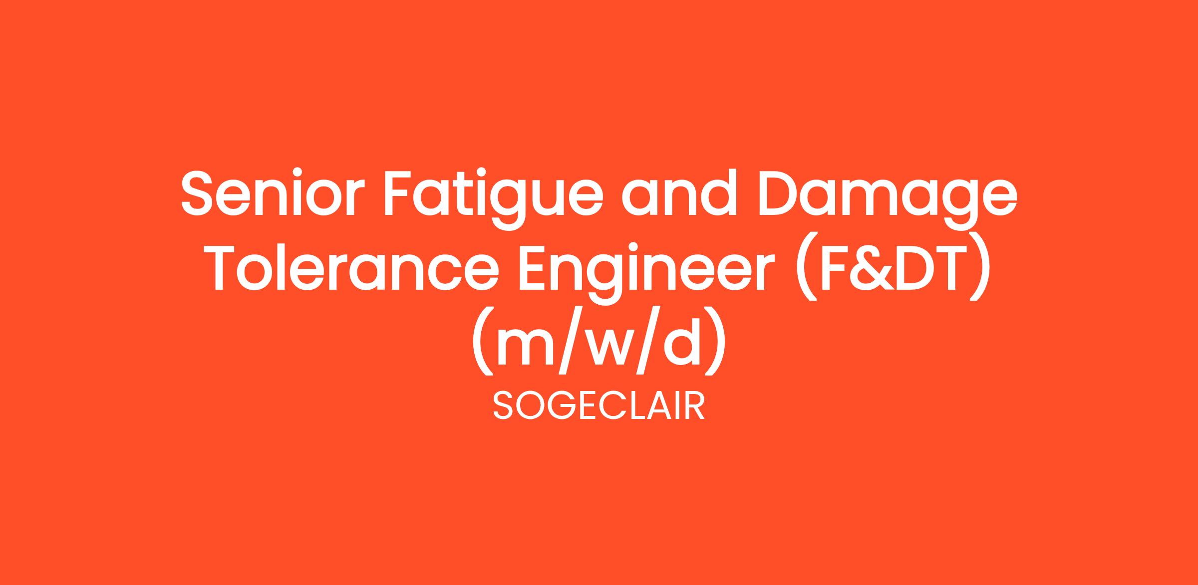 We are looking for a Senior Fatigue and Damage Tolerance Engineer (F&DT) in Getafe