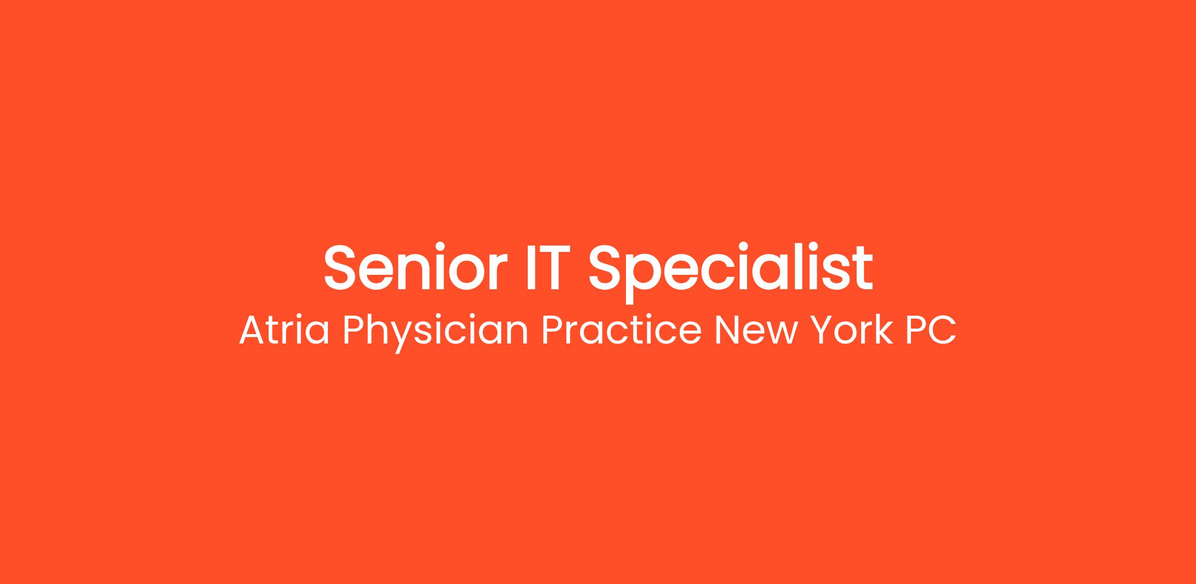 Atria’s IT environment is designed to couple the agility of a startup with the quality of top-tier service organizations with the rigor of traditional healthcare, and we are looking for a creative hands-on Senior IT Specialist who can operate across this spectrum, supporting both corporate and clinical IT systems. Atria’s customer service model is inspired by top hospitality and luxury experiences and we expect our internal team members including IT to deliver the same level of quality to our employees.