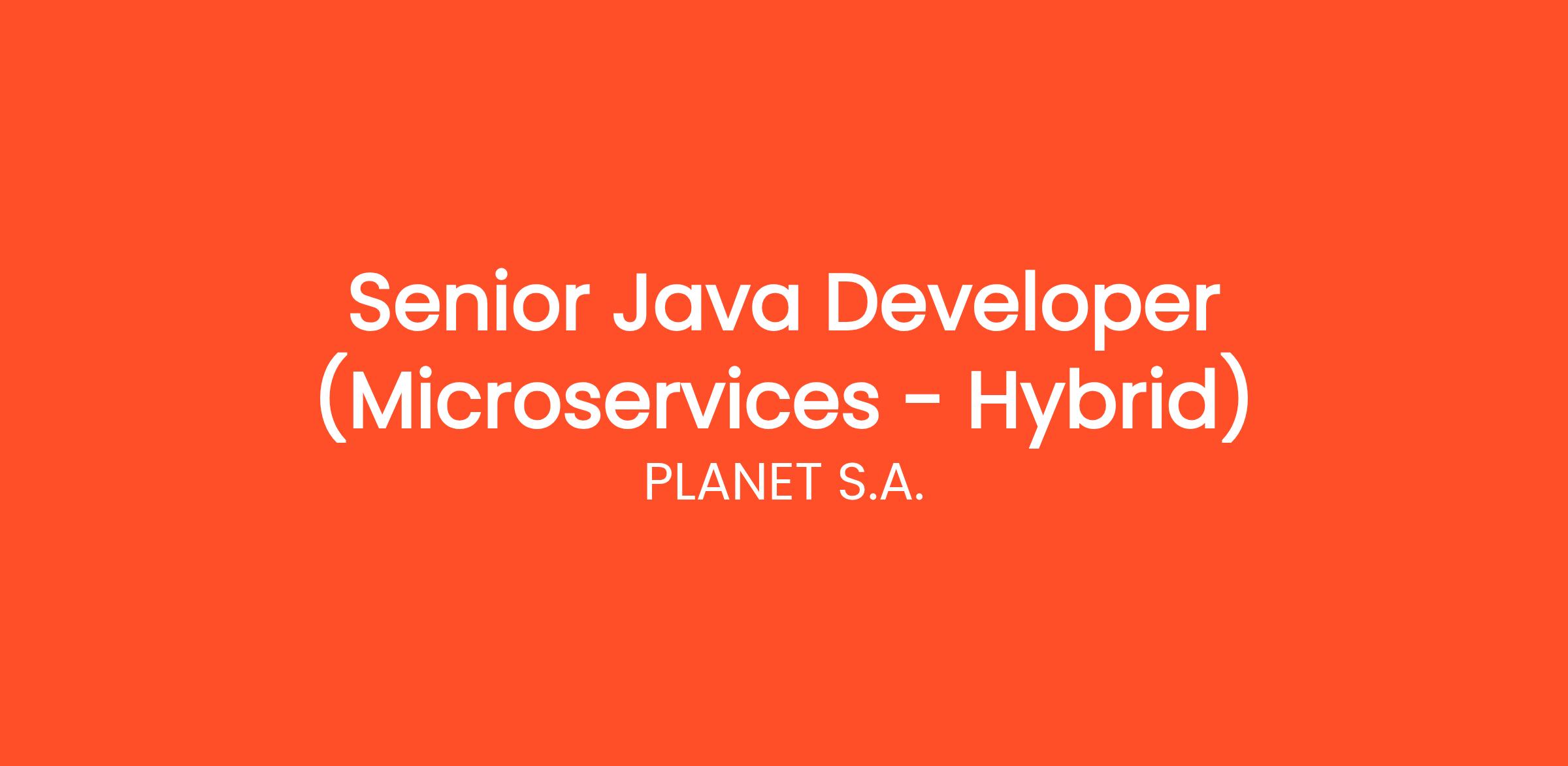 PLANET S.A., the leading Greek management and project management consulting and Enterprise solution company, is looking for a Senior Java Developer, to join their extensive Digital Services and Solutions Division.