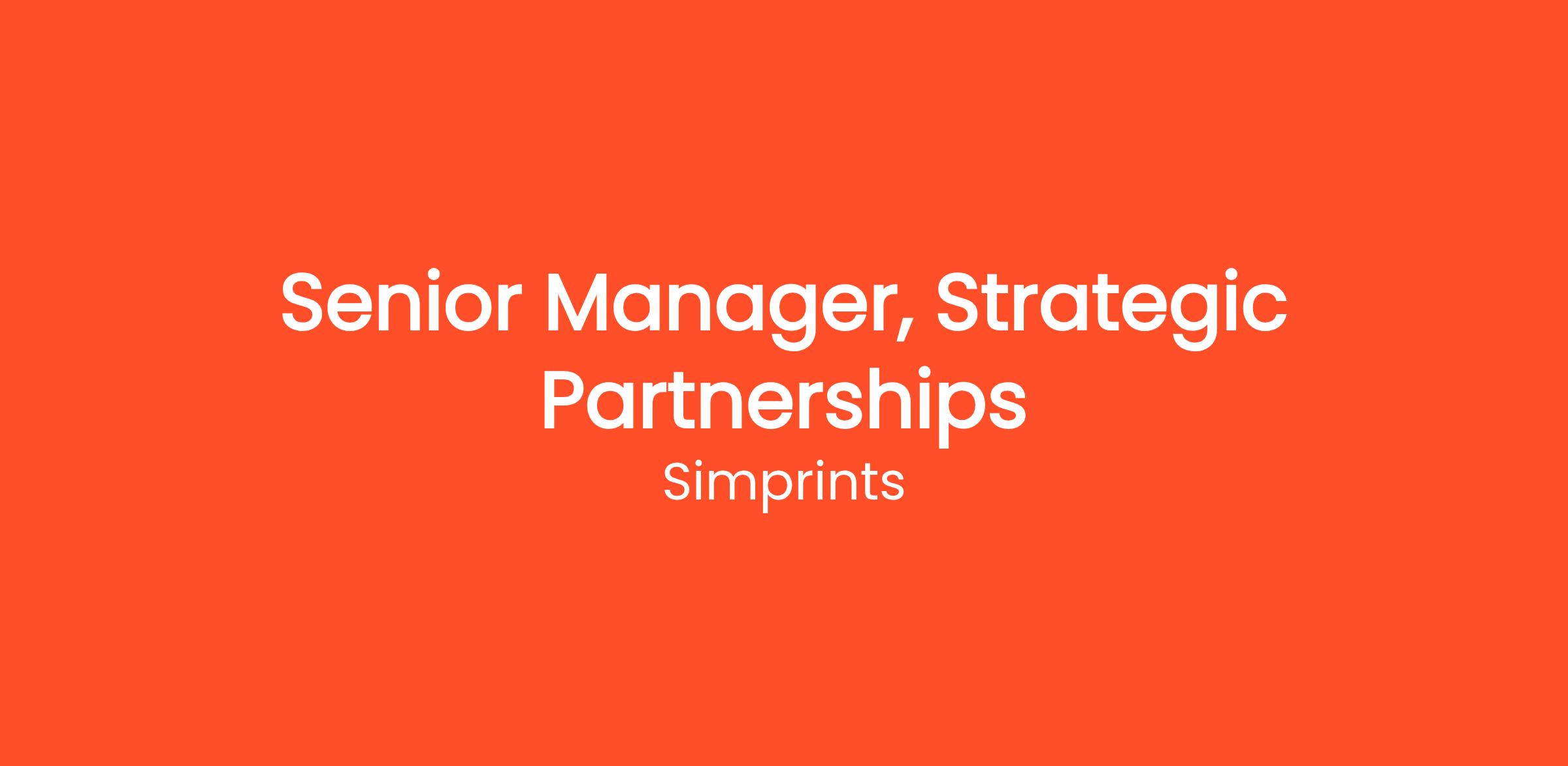 - Job Title: Senior Manager, Strategic Partnerships
