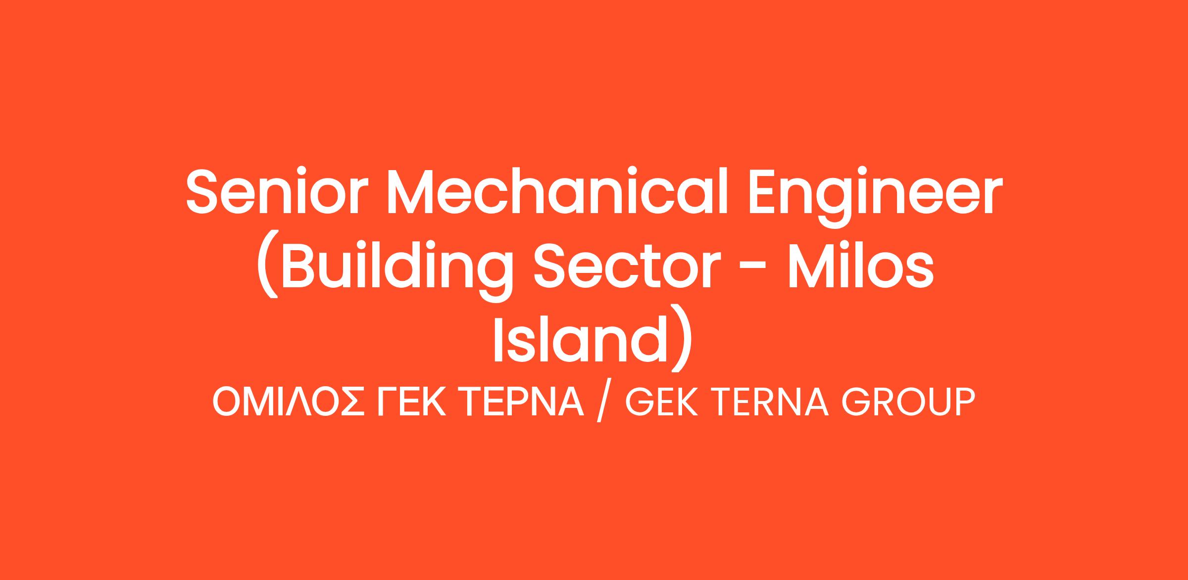 Senior Mechanical Engineer (Building Sector – Milos Island)